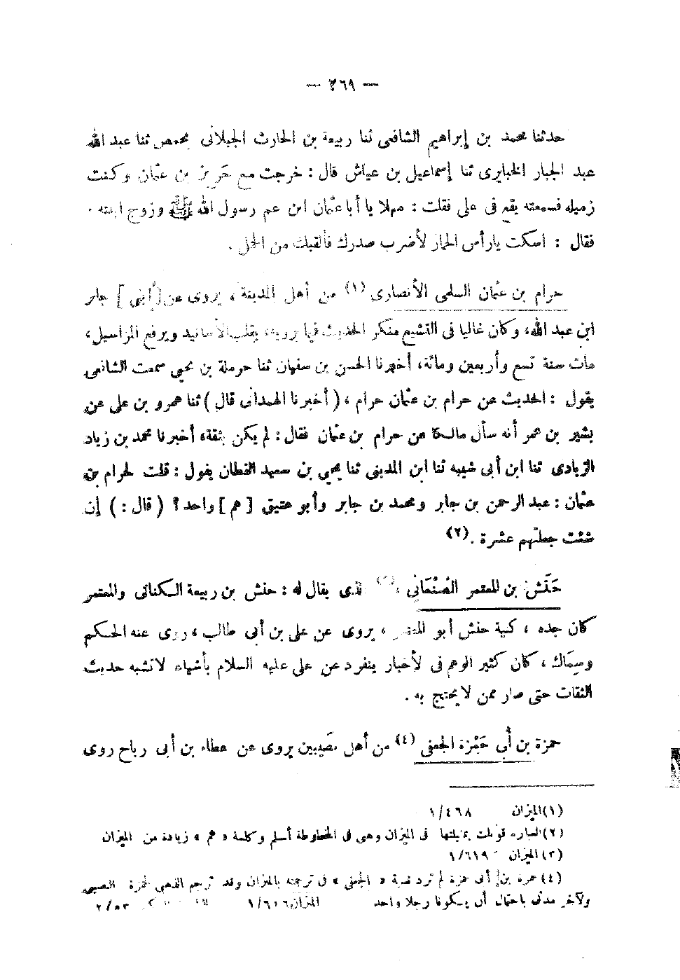 277 - حرَام بْن عُثْمَان السّلمِيّ الأَنْصَارِي من أهل الْمَدِينَة يَرْوِي عَن ابْني جَابِر بْن عَبْد اللَّهِ وَكَانَ غاليا فِي التَّشَيُّع مُنكر الْحَدِيث فِيمَا يرويهِ يقلب لأسانيد وَيرْفَع الْمَرَاسِيل مَات سنة تسع وَأَرْبَعين وَمِائَة أَخْبَرَنَا الْحَسَنُ بْنُ سُفْيَانَ ثَنَا حَرْمَلَةُ بْنُ يَحْيَى سَمِعْتُ الشَّافِعِيَّ يَقُولُ الْحَدِيثُ عَنْ حَرَامِ بْنِ عُثْمَانَ حَرَامٌ أَخْبَرَنَا الْهَمْدَانِيُّ قَالَ ثَنَا عَمْرُو بْنُ عَليّ عَن بشير بْنِ عُمَرَ أَنَّهُ سَأَلَ مَالِكًا عَنْ حَرَامِ بْنِ عُثْمَانَ فَقَالَ لَمْ يَكُنْ بِثِقَةٍ أَخْبَرَنَا مُحَمَّدُ بن زِيَاد الزبادي ثَنَا بن أبي شيبَة ثَنَا بن الْمَدِينِيِّ ثَنَا يَحْيَى بْنُ سَعِيدٍ الْقَطَّانُ يَقُولُ قُلْتُ لِحَرَامِ بْنِ عُثْمَانَ عَبْدُ الرَّحْمَنِ بْنُ جَابِرٍ وَمُحَمَّدُ بْنُ جَابِرٍ وَأَبُو عَتِيقٍ هُمْ وَاحِدٌ قَالَ إِنْ شِئْتَ جعلتهم عشرَة