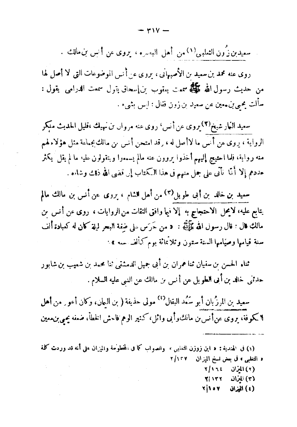 377 - الزبير بْن سَعِيد الْمَدَائِنِي شيخ يَرْوِي عَن عَبْد الحميد بْن سَالم روى عَنْهُ سَعِيد بْن زَكَرِيَّا الْمَدَائِنِي قَلِيل الْحَدِيث مُنكر الرِّوَايَة فِيمَا يرويهِ يجب التنكيب عَن مفاريده والاحتجاج بِمَا وَافق الثِّقَات عَنْهُ رَوَى عَنْ عَبْدِ الْحَمِيدِ بْنِ سَالِمٍ عَنْ أَبِي هُرَيْرَةَ قَالَ قَالَ رَسُولُ اللَّهِ صَلَّى اللَّهُ عَلَيْهِ وَسَلَّمَ مَنْ لَعِقَ ثَلاثَ لَعِقَاتِ عَسَلٍ ثَلاثَ غَدَوَاتٍ فِي كُلِّ شَهْرٍ لَمْ يُصَبْهُ عَظِيمٌ مِنَ الْبَلاءِ حَدَّثَنَاهُ حَاجِبُ بْنُ أَرْكِينَ الْفَرْغَانِيُّ ثَنَا أَحْمَدُ بن إِبْرَاهِيم ثَنَا سَعِيدُ بْنُ زَكَرِيَّا الْمَدَائِنِيُّ ثَنَا الزُّبَيْرُ بْنُ سَعِيدٍ وَلَيْسَ هَذَا بِالزُّبَيْرِ بْنِ سَعِيدٍ صَاحِبِ عَبْدِ اللَّهِ بْنِ عَلِيِّ بْنِ يزِيد بن ركَانَة