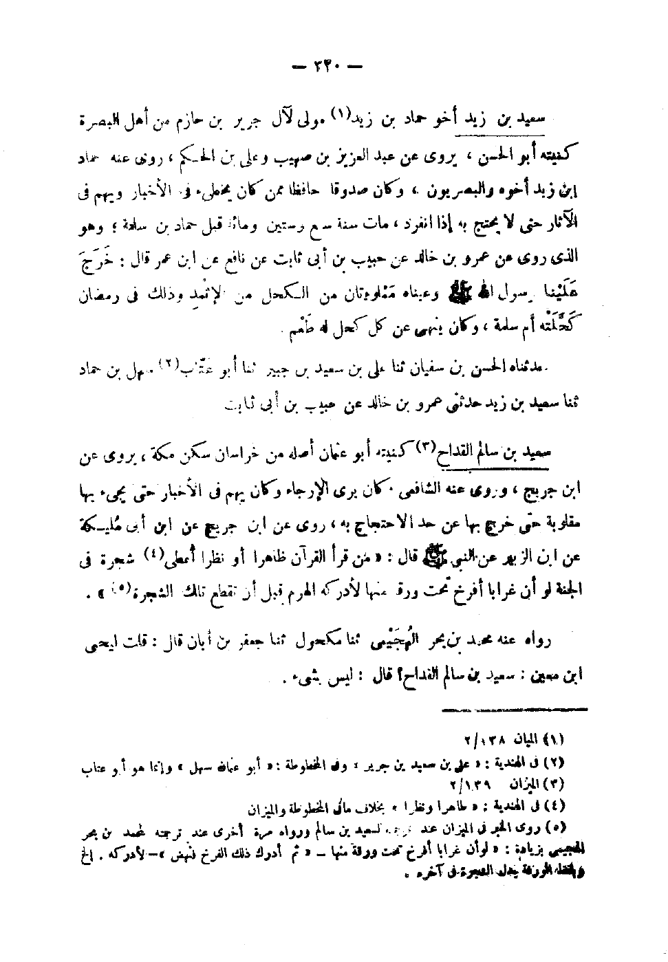 384 - سَعِيد بْن ذِي لعوة شيخ دجال يزْعم أَنَّهُ رأى عُمَرَ بْنِ الْخَطَّابِ رَضِيَ اللَّهُ عَنْهُ يشرب الْمُسكر روى عَنْهُ الشَّعْبِي وَلَمْ يرو فِي الدُّنْيَا إِلَّا هَذَا الْحَدِيث وحَدِيثا آخر لَا يحل ذكره فِي الْكتب وَمن زعم أَنَّهُ سَعِيد بْن ذِي حدان فَقَدْ وَهُمْ وَكَيف يشرب عُمَر بْن الْخَطَّاب رَحمَه اللَّه الْمُسكر وَهُوَ الَّذِي خطب النَّاس بِالْمَدِينَةِ وَقَالَ فِي خطبَته سَمِعْتُ النَّبِيَّ صَلَّى اللَّهُ عَلَيْهِ وَسَلَّمَ يَقُول الْخمر من خَمْسَة أَشْيَاء وَالْخمر مَا خامر الْعقل وَلَمْ يكن عُمَر مِمَّن كَانَ يشْربهَا فِي أول الإِسْلام حَيْثُ كَانَ شربهَا حَلَالا بَل حرمهَا عَلَى نَفْسه وَقَالَ لَا أشْرب شَيْئًا يذهب عَقْلِي
