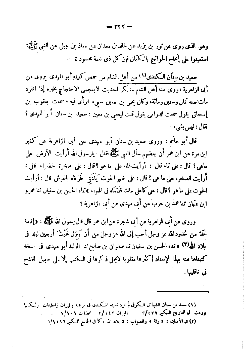 390 - سعيد بْن زَرْبِي من أهل الْبَصْرَة كنيته أَبُو مُعَاوِيَة يَرْوِي عَن ثَابت الْبنانِيّ روى عَنْهُ حَمَّاد بن سَلمَة والبصريون وَقد قبل كنيته أَبُو عُبَيْدَة وَكَانَ مِمَّن يروي المضوعات عَن الْأَثْبَات عَلَى قلَّة رِوَايَته سَمِعْتُ مُحَمَّدَ بْنَ مَحْمُودٍ يَقُولُ سَمِعْتُ الدَّارِمِيَّ يَقُولُ قُلْتُ لِيَحْيَى بن معِين مَا حاول سَعِيدِ بْنِ زَرْبِيٍّ فَقَالَ لَيْسَ بِشَيْءٍ