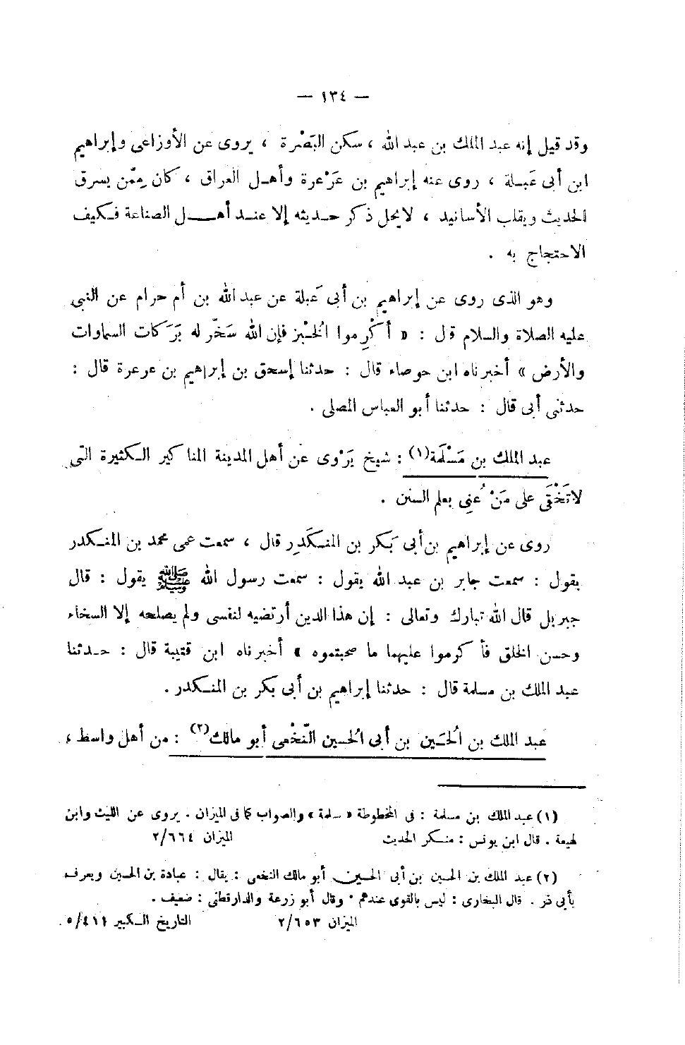 733 - عبد الْملك بن مسلمة شيخ يروي عَن أهل الْمَدِينَة الْمَنَاكِير الْكَثِيرَة الَّتِي لَا تخفى على من عَنى بِعلم السّنَن روى عَن إِبْرَاهِيم بن أبي بكر بن الْمُنْكَدر قَالَ سَمِعت عمي مُحَمَّد بن الْمُنْكَدر يَقُول سَمِعت جَابر بْنَ عَبْدِ اللَّهِ يَقُولُ سَمِعْتُ رَسُولُ اللَّهِ صَلَّى اللَّهُ عَلَيْهِ وَسلم يَقُول قَالَ جِبْرِيل قَالَ الله تبَارك وَتَعَالَى إِن هَذَا الدَّين أرتضيه لنَفْسي وَلم يصلحه إِلَّا السخاء وَحسن الْخلق فأكرموا عَلَيْهِمَا مَا صحبتموه أخبرناه بن قُتَيْبَة قَالَ حَدثنَا عبد الْملك بن مسلمة قَالَ حَدثنَا إِبْرَاهِيم بن أبي بكر بن الْمُنْكَدر