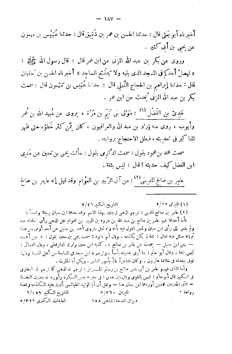 أَخْبَرَنَاهُ أَبُو يَعْلَى قَالَ حَدَّثَنَا الْحَسَنُ بْنُ عُمَرَ بْنِ شَقِيقٍ قَالَ حَدَّثَنَا عُبَيْسُ بْنُ مَيْمُونٍ عَنْ يَحْيَى بْنِ أَبِي كَثِيرٍ وَرَوَى عَنْ بَكْرِ بْنِ عَبْدِ الله الْمُزنِيّ عَن بن عُمَر قَالَ قَالَ رَسُول الله صَلَّى اللَّهُ عَلَيْهِ وَسَلَّمَ لِيُصَلِّ أحدكُم فِي الْمَسْجِد الَّذِي يليله وَلا يَتَتَبَّعِ الْمَسَاجِدَ أَخْبَرَنَاهُ الْحَسَنُ بْنُ سُفْيَانَ قَالَ حَدَّثَنَا إِبْرَاهِيمُ بن الْحجَّاج النبلي قَالَ حَدَّثَنَا عُبَيْسُ بْنُ مَيْمُونٍ قَالَ سَمِعْتُ بَكْرَ بْنَ عَبْدِ الله الْمُزنِيّ يحدث عَن بن عمر