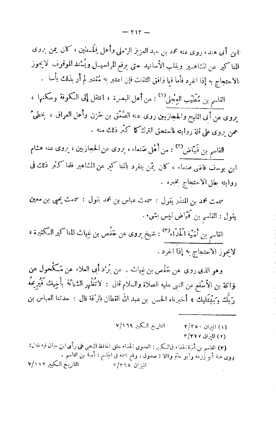 880 - الْقَاسِم بن فياض من أهل صنعاء يروي عَن الْحِجَازِيِّينَ يروي عَن هِشَام بن يُوسُف قَاضِي صنعاء كَانَ مِمَّن ينْفَرد بِالْمَنَاكِيرِ عَن الْمَشَاهِير فَلَمَّا كثر ذَلِك فِي رِوَايَته بَطل الِاحْتِجَاج بِخَبَرِهِ سَمِعت مُحَمَّد بن الْمُنْذر يَقُول سَمِعت عَبَّاس بن مُحَمَّد يَقُول سَمِعت يحيى بن معِين يَقُول الْقَاسِم بن فياض لَيْسَ بِشَيْء