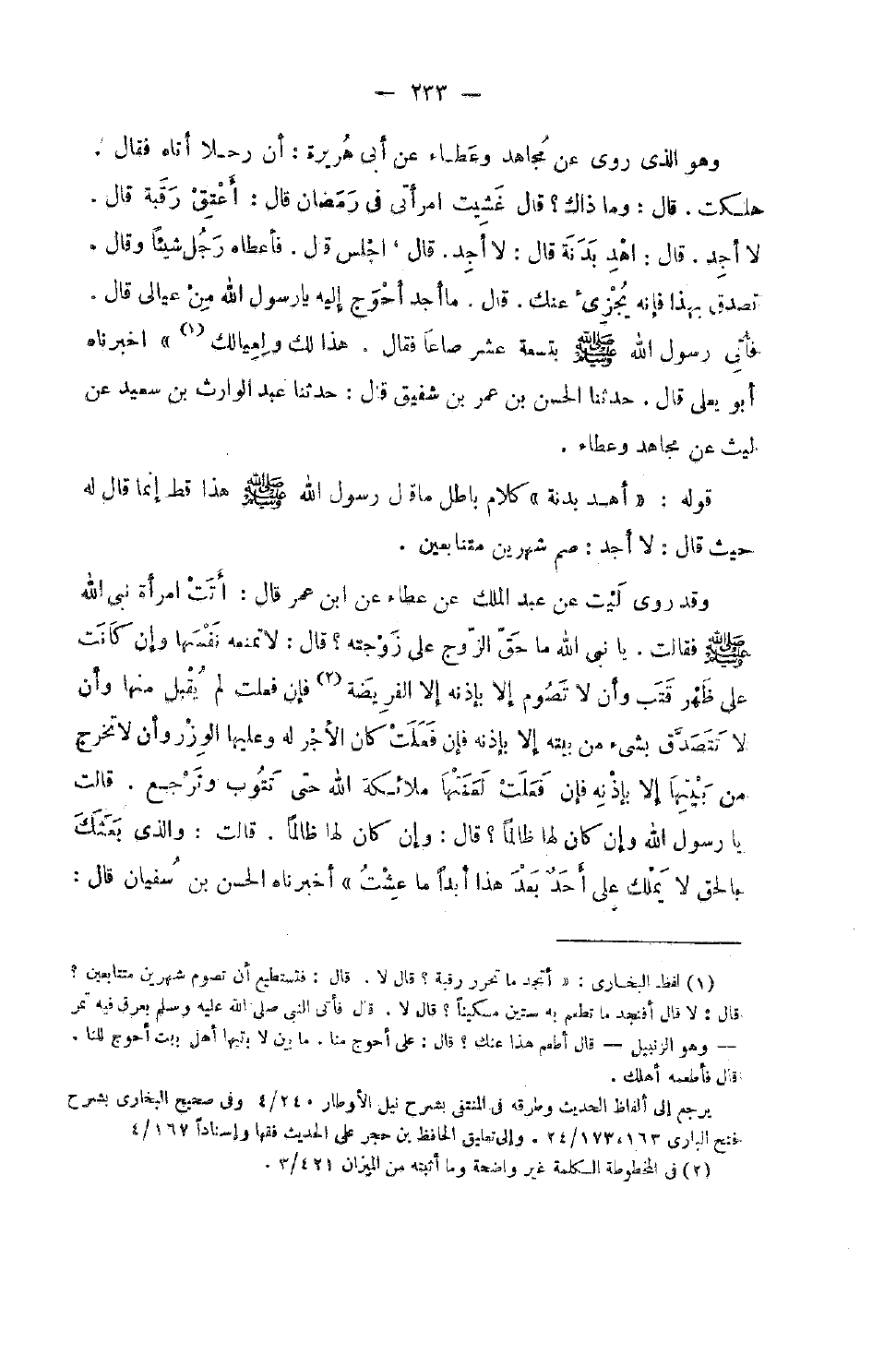 وَهُوَ الَّذِي رَوَى عَنْ مُجَاهِدٍ وَعَطَاءٍ عَنْ أَبِي هُرَيْرَةَ أَنَّ رَجُلا أَتَاهُ فَقَالَ هَلَكْتُ قَالَ وَمَا ذَاكَ قَالَ غَشِيتُ امْرَأَتِي فِي رَمَضَانَ قَالَ أَعْتِقْ رَقَبَةً قَالَ لَا أَجِدُ قَالَ اهْدِ بَدَنَةً قَالَ لَا أَجِدُ قَالَ اجْلِسْ قَالَ فَأَعْطَاهُ رَجُلٌ شَيْئًا وَقَالَ تَصَدَّقْ بِهَذَا فَإِنَّهُ يُجْزِئُ عَنْكَ قَالَ مَا أَجِدُ أَحْوَجَ إِلَيْهِ يَا رَسُولَ اللَّهِ مِنْ عِيَالِي قَالَ فَأَتَى رَسُولُ اللَّهِ صَلَّى اللَّهُ عَلَيْهِ وَسَلَّمَ بِتِسْعَةَ عَشَرَ صَاعًا فَقَالَ هَذَا لَكَ وَلِعِيَالِكَ أَخْبَرَنَاهُ أَبُو يَعْلَى قَالَ حَدَّثَنَا الْحَسَنُ بْنُ عُمَرَ بْنِ شفيق قَالَ حَدَّثَنَا عَبْدُ الْوَارِثِ بْنُ سَعِيدٍ عَنْ لَيْثٍ عَنْ مُجَاهِدٍ وَعَطَاءٍ قَوْلُهُ اهْدِ بَدَنَةً كَلامٌ بَاطِلٌ مَا قَالَ رَسُولُ اللَّهِ صَلَّى اللَّهُ عَلَيْهِ وَسَلَّمَ هَذَا قَطُّ إِنَّمَا قَالَ لَهُ حَيْثُ قَالَ لَا أَجِدُ صُمْ شَهْرَيْنِ متتا بِعَين وَقَدْ رَوَى لَيْثٌ عَنْ عَبْدِ الْملك عَن عَطاء عَن بن عُمَرَ قَالَ أَتَتِ امْرَأَةٌ نَبِيَّ اللَّهِ صَلَّى اللَّهُ عَلَيْهِ وَسَلَّمَ فَقَالَتْ يَا نَبِيَّ اللَّهِ مَا حَقُّ الزَّوْجِ عَلَى زَوْجَتِهِ قَالَ لَا تَمْنَعُهُ نَفْسَهَا وَإِنْ كَانَتْ عَلَى ظَهْرِ قَتَبٍ وَأَنْ لَا تَصُومَ إِلا بِإِذْنِهِ إِلا الْفَرِيضَةَ فَإِنْ فَعَلَتْ لَمْ يُقْبَلْ مِنْهَا وَأَنْ لَا تَتَصَدَّقَ بِشَيْءٍ مِنْ بَيْتِهِ إِلا بِإِذْنِهِ فَإِنْ فَعَلَتْ كَانَ الأَجْرُ لَهُ وَعَلَيْهَا الْوِزْرُ وَأَنْ لَا تَخْرُجَ مِنْ بَيْتِهَا إِلا بِإِذْنِهِ فَإِنْ فَعَلَتْ لَعَنَتْهَا مَلائِكَةُ اللَّهِ حَتَّى تَتُوبَ وَتَرْجِعَ قَالَتْ يَا رَسُولَ اللَّهِ وَإِنْ كَانَ لَهَا ظَالِمًا قَالَ وَإِنْ كَانَ لَهَا ظَالِمًا قَالَتْ وَالَّذِي بَعَثَكَ بِالْحَقِّ لَا يُمَلَّكُ عَلَيَّ أَحَدٌ بَعْدَ هَذَا أَبَدًا مَا عِشْتُ أَخْبَرَنَاهُ الْحَسَنُ بْنُ سُفْيَانَ قَالَ