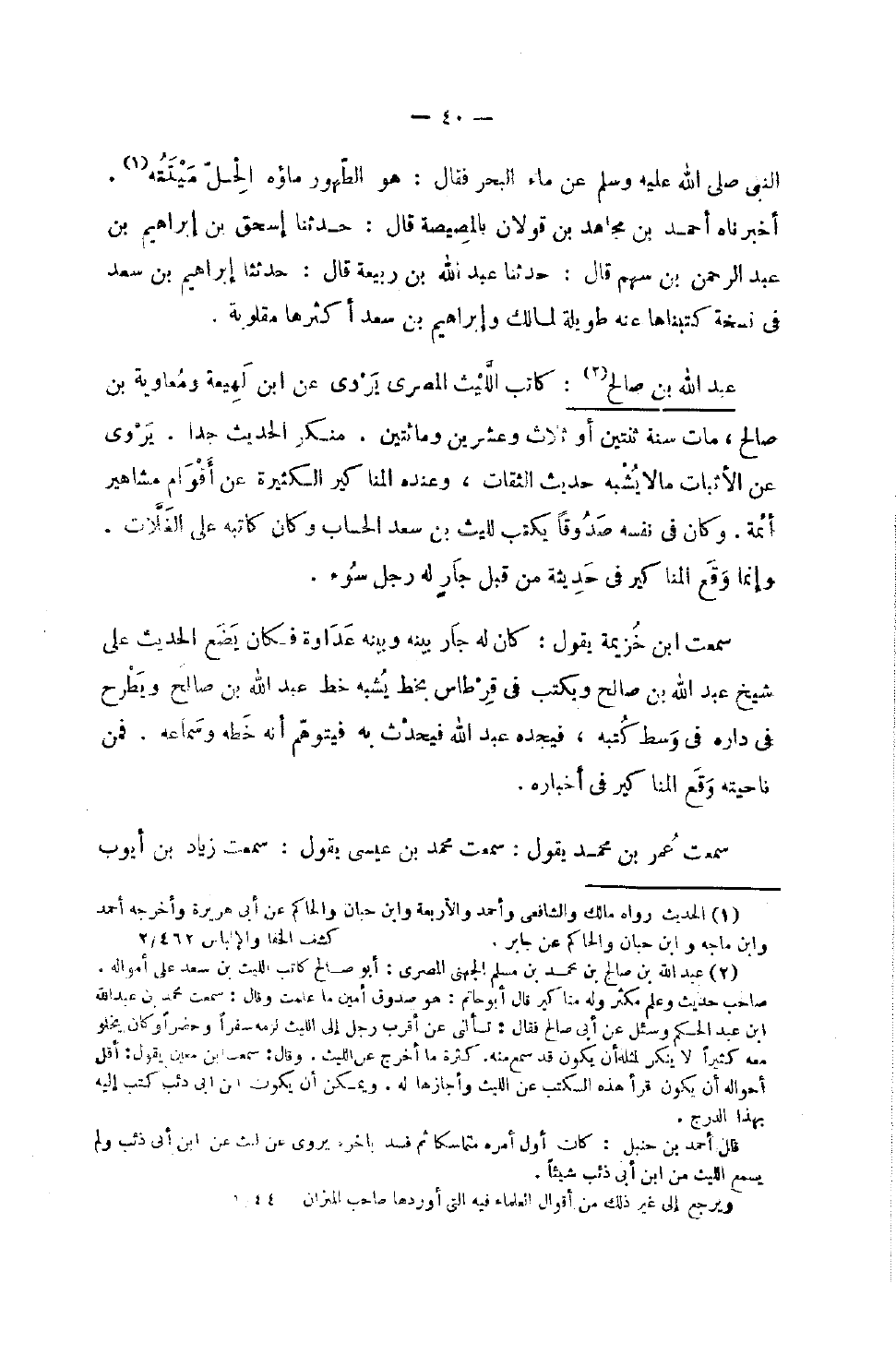 النَّبِي صَلَّى اللَّهُ عَلَيْهِ وَسَلَّمَ عَنْ مَاءِ الْبَحْرِ فَقَالَ هُوَ الطَّهُورُ مَاؤُهُ الْحِلُّ مَيْتَتُهُ أَخْبَرَنَاهُ أَحْمد بن محسن بن هِلَال قَولَانِ بِالْمِصِّيصَةِ قَالَ حَدَّثَنَا إِسْحَاقُ بْنُ إِبْرَاهِيمَ بْنِ عَبْدِ الرَّحْمَنِ بْنِ سَهْمٍ قَالَ حَدَّثَنَا عَبْدُ اللَّهِ بْنُ رَبِيعَةَ قَالَ حَدَّثَنَا إِبْرَاهِيمُ بْنُ سَعْدٍ فِي نُسْخَةٍ كَتَبْنَاهَا عَنْهُ طَوِيلَةٍ لِمَالِكٍ وَإِبْرَاهِيمَ بن سعد أَكْثَرهَا مَقْلُوبَة