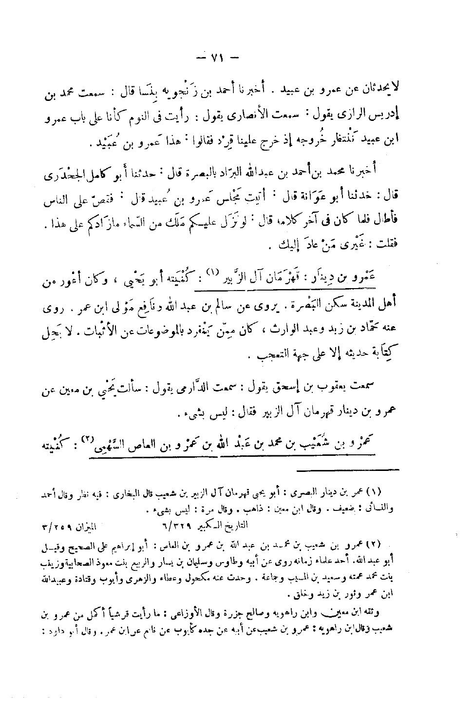 لَا يحدثان عَن عَمْرو بن عبيد أخبرنَا أَحْمد بن زَنْجوَيْه بنسا قَالَ سَمِعت مُحَمَّد بن إِدْرِيس الرَّازِيّ يَقُول سَمِعت الْأنْصَارِيّ يَقُول رَأَيْت فِي النّوم كأنا على بَاب عَمْرو بن عبيد نَنْتَظِر خُرُوجه إِذا خرج علينا قرد فَقَالُوا هَذَا عَمْرو بن عبيد أخبرنَا مُحَمَّد بن أَحْمد بن عبد الله البراد بِالْبَصْرَةِ قَالَ حَدثنَا أَبُو كَامِل الجحدري قَالَ حَدثنَا أَبُو عوَانَة قَالَ أتيت مجْلِس عَمْرو بن عبيد قَالَ فَقص على النَّاس فَأطَال فَلَمَّا كَانَ فِي آخر كَلَامه قَالَ لَو نزل عَلَيْكُم ملك من السَّمَاء مَا زادكم على هَذَا فَقلت غَيْرِي من عَاد إِلَيْك