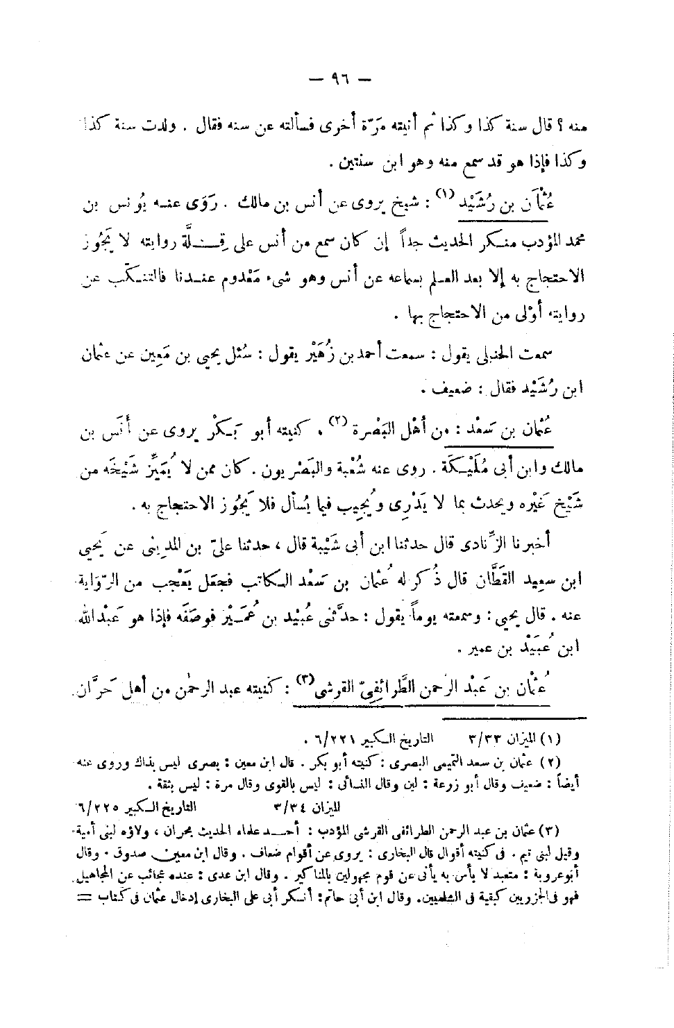 662 - عُثْمَان بن رشيد شيخ يروي عَن أنس بن مَالك روى عَنْهُ يُونُس بْن مُحَمَّد الْمُؤَدب مُنكر الحَدِيث جدا إِن كَانَ سمع من أنس على قلَّة رِوَايَته لَا يَجُوز الِاحْتِجَاج بِهِ إِلَّا بعد الْعلم بِسَمَاعِهِ عَن أنس وَهُوَ شَيْء مَعْدُوم عندنَا فالتنكب عَن رِوَايَته أولى من الِاحْتِجَاج بهَا سَمِعت الْحَنْبَلِيّ يَقُولُ سَمِعْتُ أَحْمَدَ بْنَ زُهَيْرٍ يَقُول سُئِلَ يَحْيَى بْن معِين عَن عُثْمَان بن رشيد فَقَالَ ضَعِيف