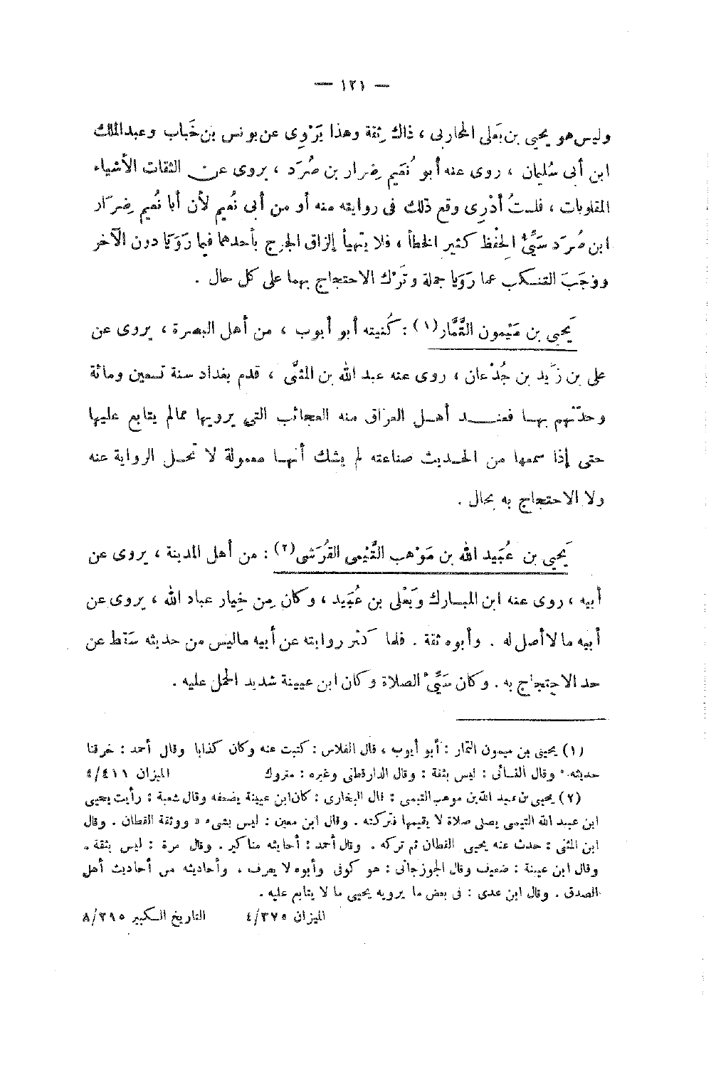 1214 - يحيى بن عبيد الله بن موهب التَّيْمِيّ الْقرشِي من أهل الْمَدِينَة يروي عَن أَبِيه روى عَنهُ بن الْمُبَارك ويعلى بن عبيد وَكَانَ من خِيَار عباد الله يروي عَن أَبِيهِ مَا لَا أصل لَهُ وَأَبوهُ ثِقَة فَلَمَّا كثر رِوَايَته عَن أَبِيه مَا لَيْسَ من حَدِيثه سقط عَن حد الِاحْتِجَاج بِهِ وَكَانَ سيء الصَّلَاة وَكَانَ بن عُيَيْنَة شَدِيد الْحمل عَلَيْهِ