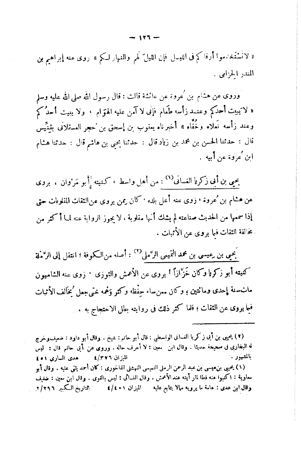 1221 - يحيى بن عِيسَى بن مُحَمَّد التَّمِيمِي الرَّمْلِيّ أَصله من الْكُوفَة انْتقل إِلَى الرملة كنيته أَبُو زَكَرِيَّا وَكَانَ خزازا يروي عَن الْأَعْمَش وَالثَّوْري روى عَنهُ الشاميون مَاتَ سنة إِحْدَى وَمِائَتَيْنِ وَكَانَ مِمَّن سَاءَ حفظه وَكثر وهمه حَتَّى جعل يُخَالف الْأَثْبَات فِيمَا يروي عَن الثِّقَات فَلَمَّا كثر ذَلِك فِي رِوَايَته بَطل الِاحْتِجَاج بِهِ