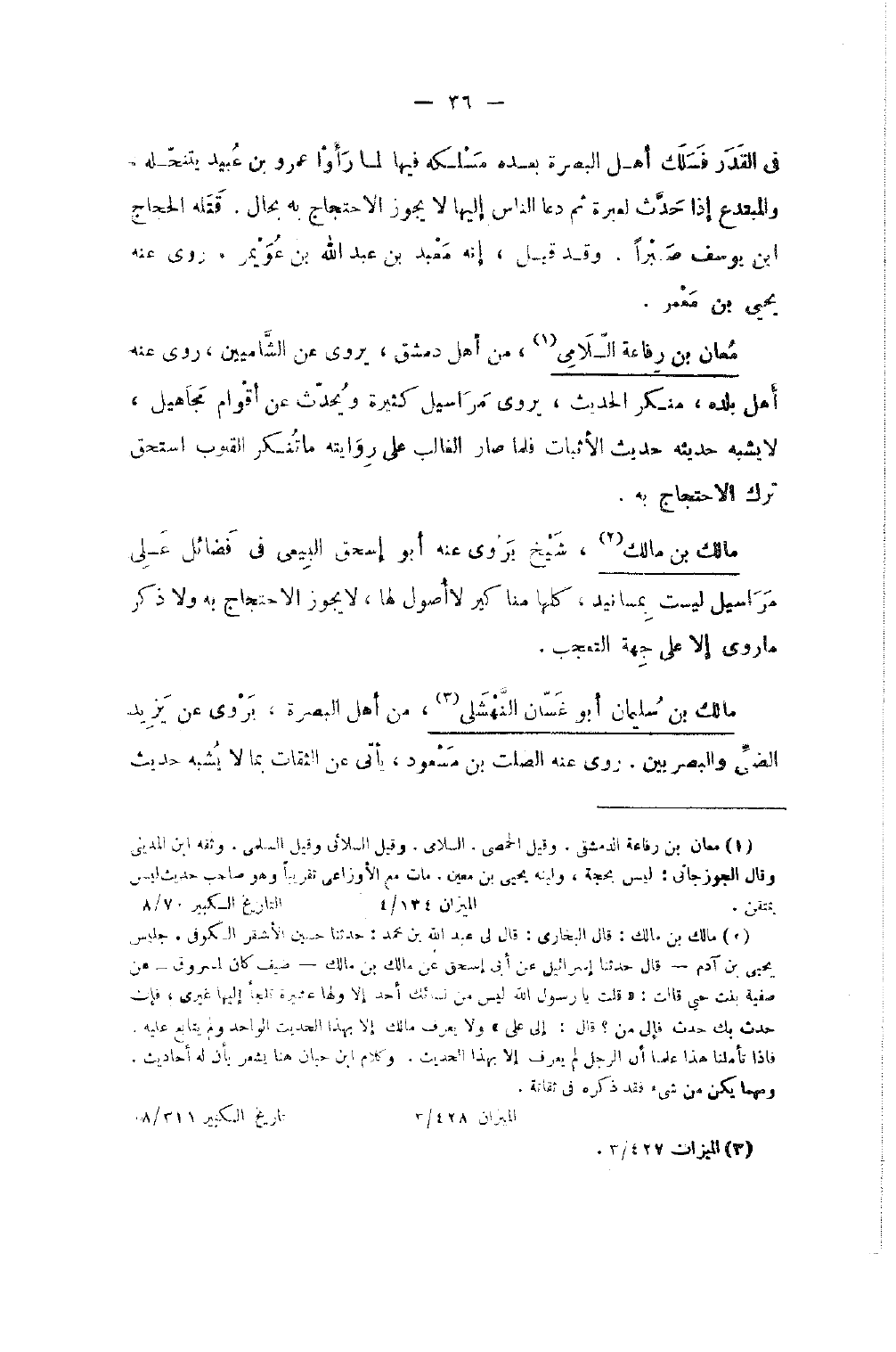 فِي الْقدر فسلك أهل الْبَصْرَة بعده مسلكه فِيهَا لما رَأَوْا عَمْرو بن عبيد يتنحله والمبتدع إِذا حدث لعبرة ثمَّ دَعَا النَّاس إِلَيْهَا لَا يجوز الِاحْتِجَاج بِهِ بِحَال قَتله الْحجَّاج بن يُوسُف صبرا وَقد قيل إِنَّه معبد بن عبد الله بن عُوَيْمِر روى عَنهُ يحيى بن معِين