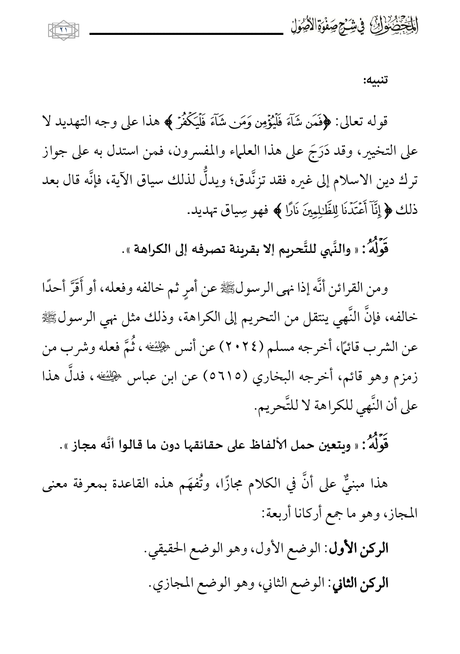 هذا مبنيٌّ على أنَّ في الكلام مجازًا، وتُفهَم هذه القاعدة بمعرفة معنى المجاز، وهو ما جمع أركانا أربعة: