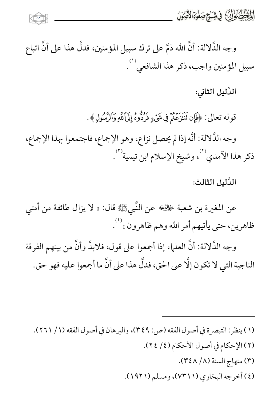 (¬١) ينظر: التبصرة في أصول الفقه (ص: ٣٤٩)، والبرهان في أصول الفقه (١/ ٢٦١).