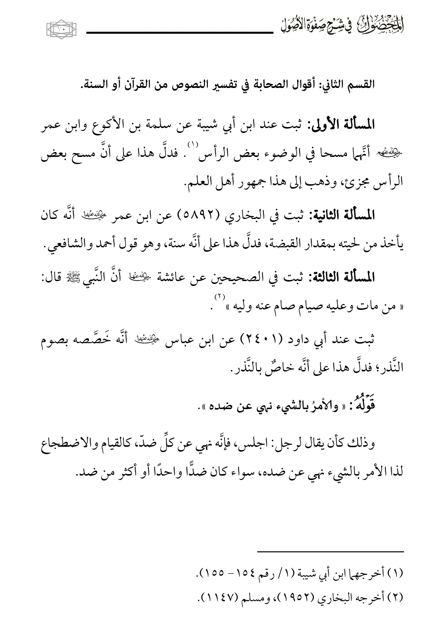 القسم الثاني: أقوال الصحابة في تفسير النصوص من القرآن أو السنة.
