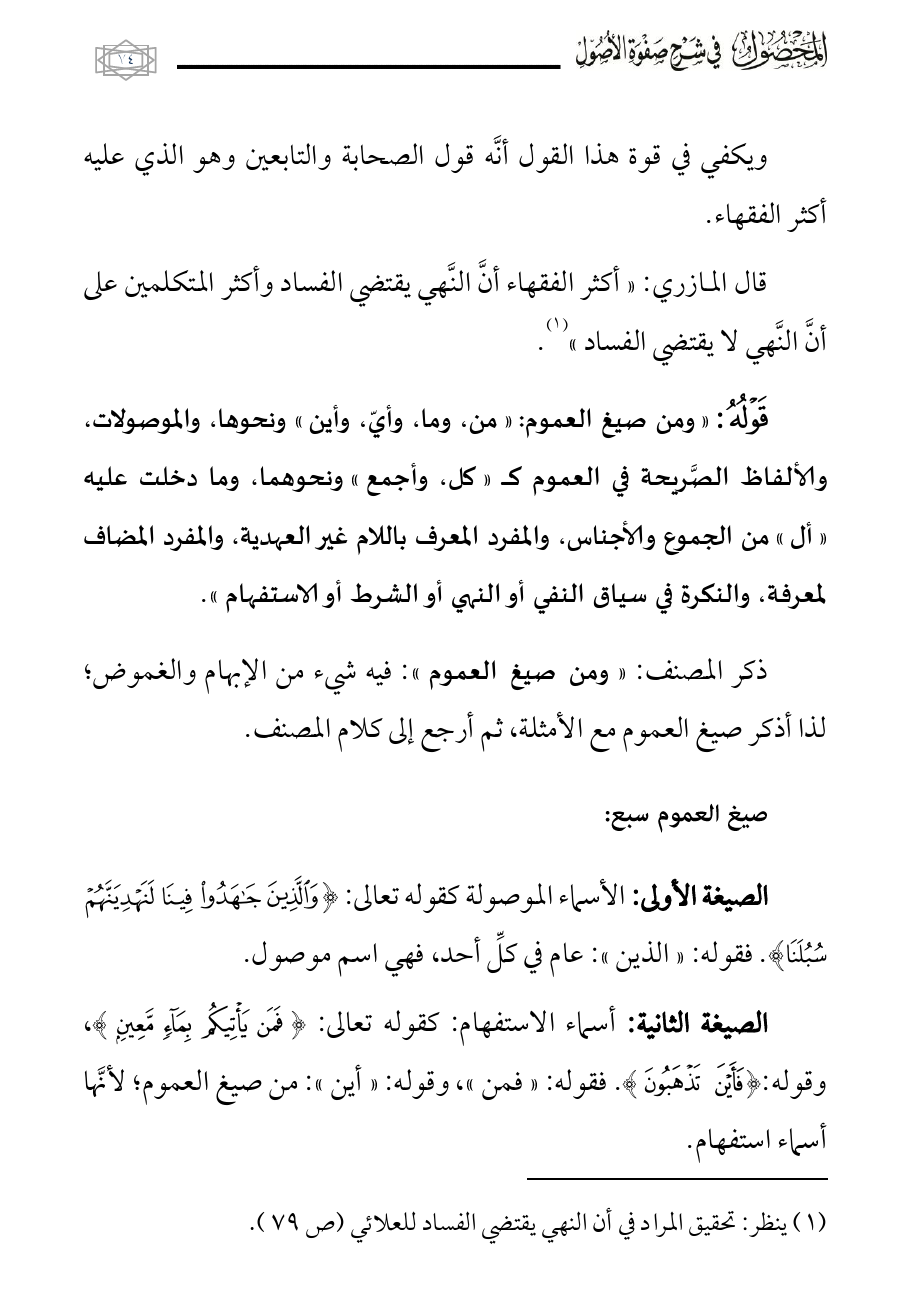 (¬١) ينظر: تحقيق المراد في أن النهي يقتضي الفساد للعلائي (ص ٧٩).