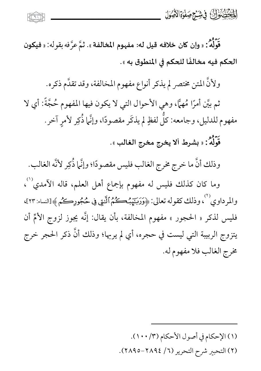 (¬٢) التحبير شرح التحرير (٦/ ٢٨٩٤ - ٢٨٩٥).