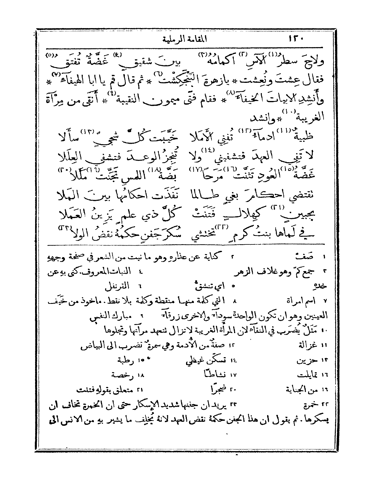 فقال: عشت ونعشت، يا زهرة البنجكشت. ثم قال: قم يا أبا الهيفاء، وأنشد الأبيات الخيفاء. فقام فتى ميمون النقيبة، أنقى من مرآة الغريبة. وأنشد:
