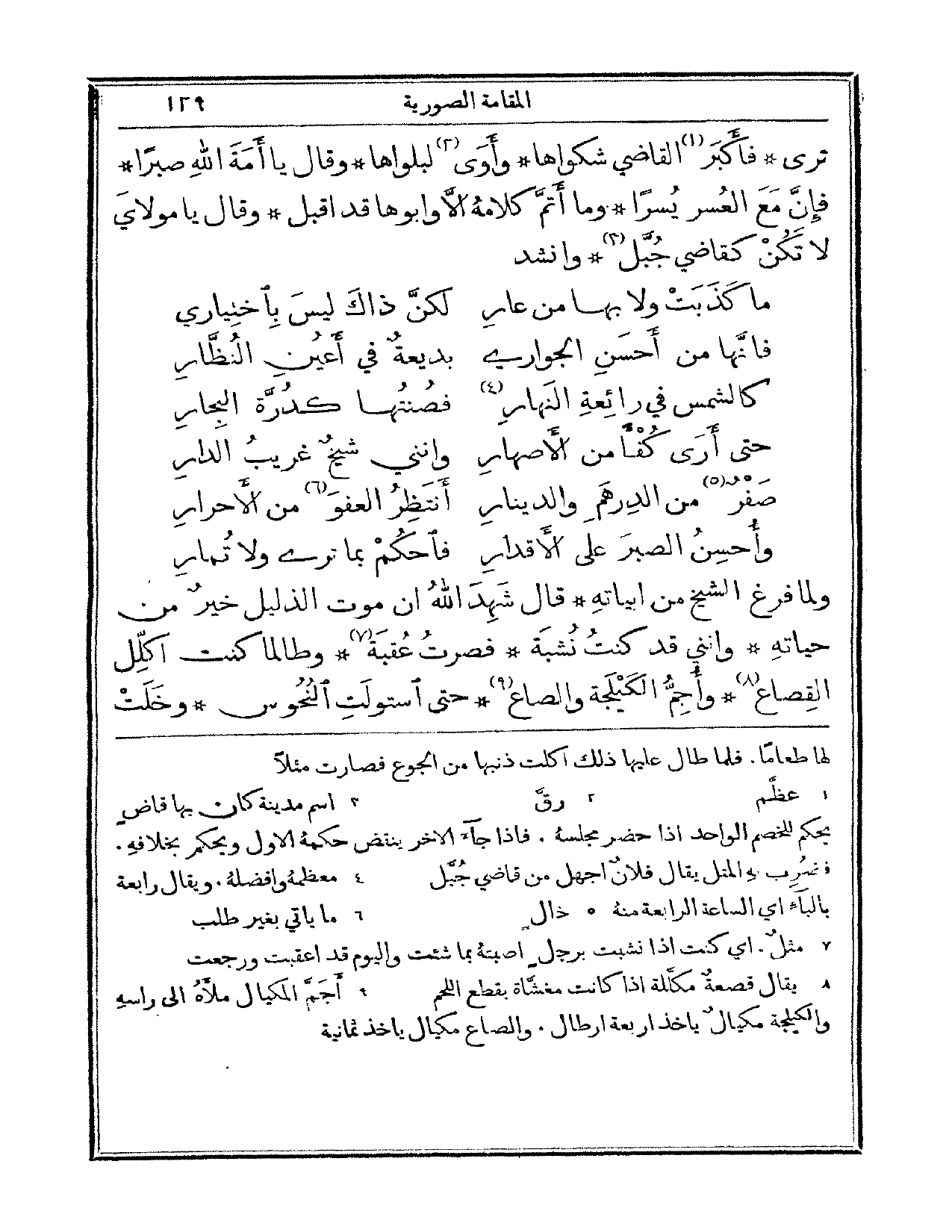ترى. فأكبر القاضي شكواها، وأوى لبلواها. وقال: يا أمة الله صبراً! فإن مع العسر يسراً، وما أتم كلامه إلا وأبوها قد أقبل، وقال: يا مولاي لا تكن كقاضي جبل. وأنشد: