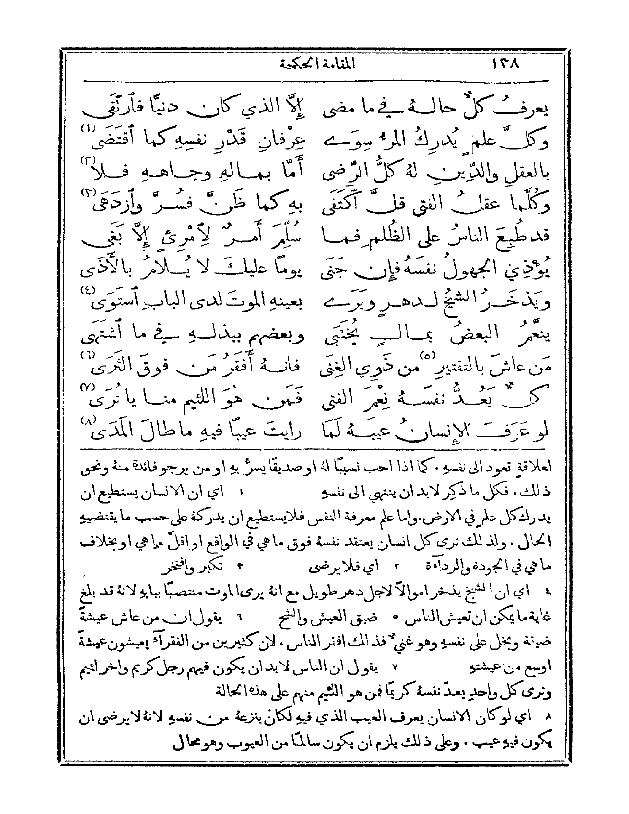 وكل علمٍ يدرك المرس سوى ... عرفان قدر نفسه كما اقتضى