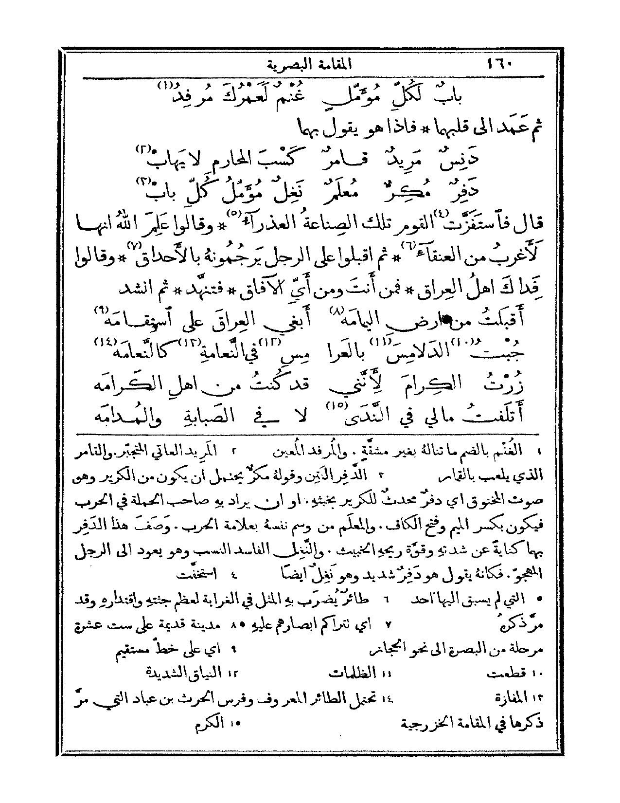 قال: فاستفزت القوم تلك الصناعة العذراء وقالوا: علم الله أنها لأغراب من العنقاء. ثم أقبلوا على الرجل يرجمونه بالأحداق، وقالوا: فداك أهل العرق! فمن أنت ومن أي الآفاق؟ فتنهد، ثم أنشد: