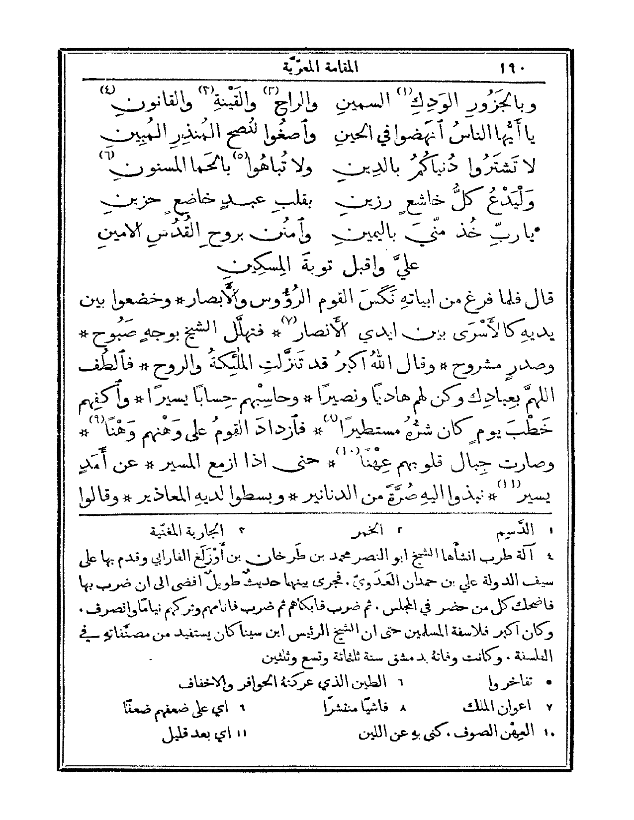 يا أيها الناس انهضوا في الحين، ... واصغوا لنصح المنذر المبين