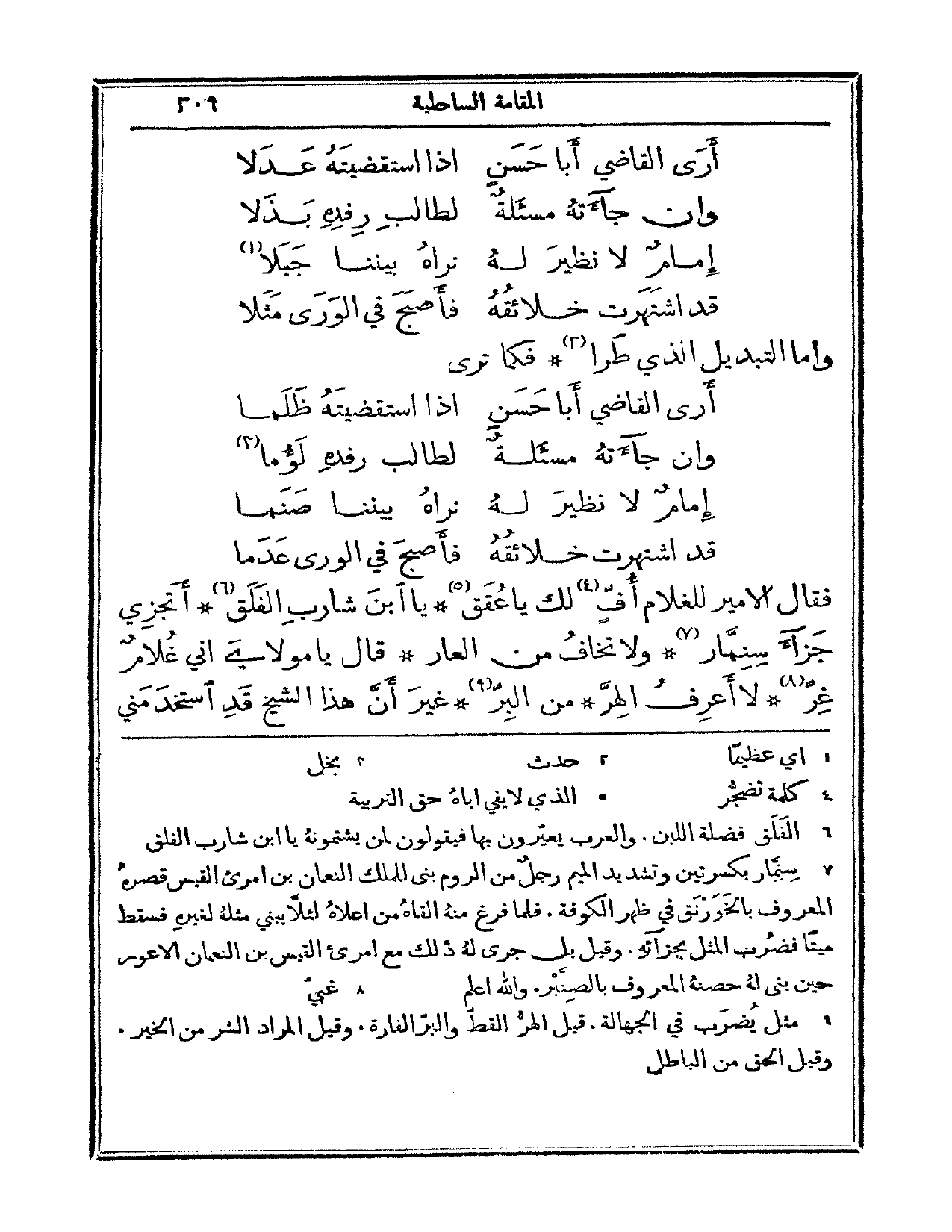 فقال الأمير للغلام: أف لك يا عقق، يا ابن شارب الفلق أتجزي جزاء سنمار، ولا تخاف من العار؟ قال: يا مولاي إني غلام غر، لا أعرف الهر، من البر. غير أن هذا الشيخ قد استخدمني