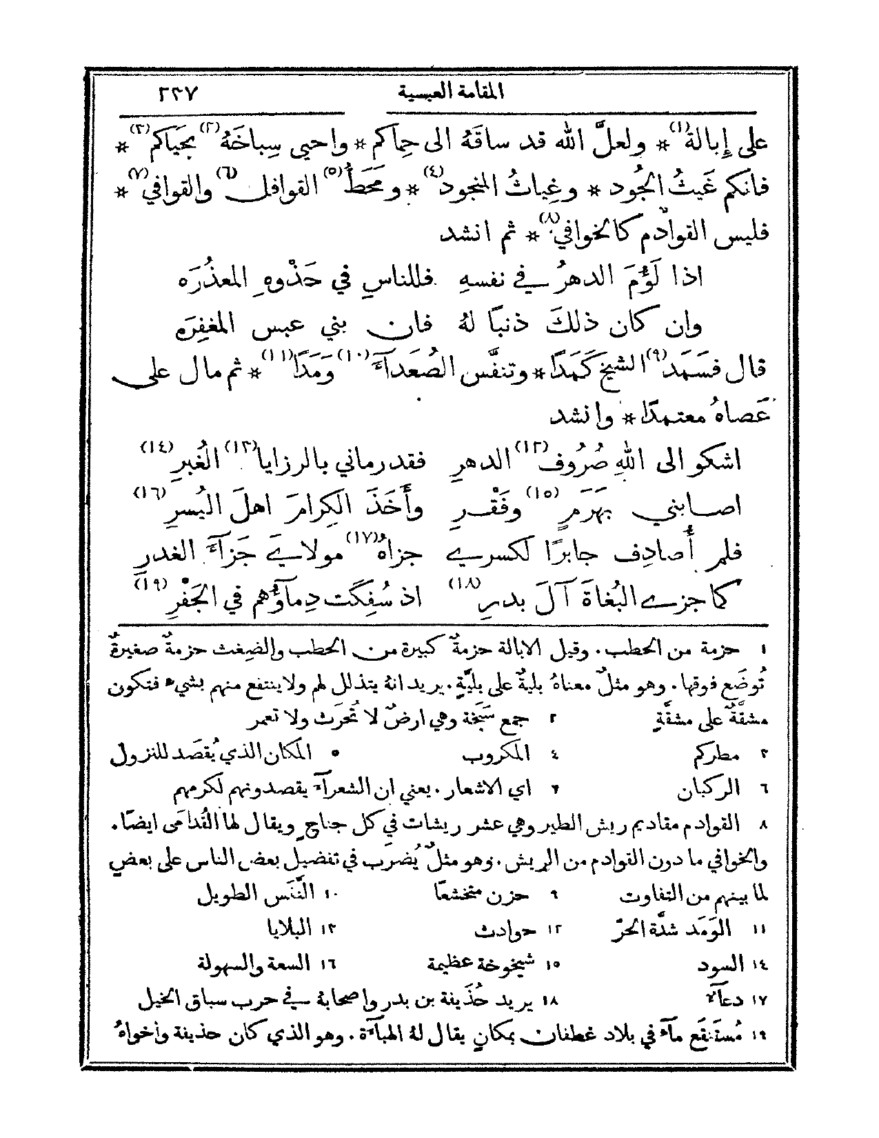 قال: فسمد الشيخ كمداً وتنفس الصعداء ومداً، ثم مال على عصاه معتمداً. وأنشد:
