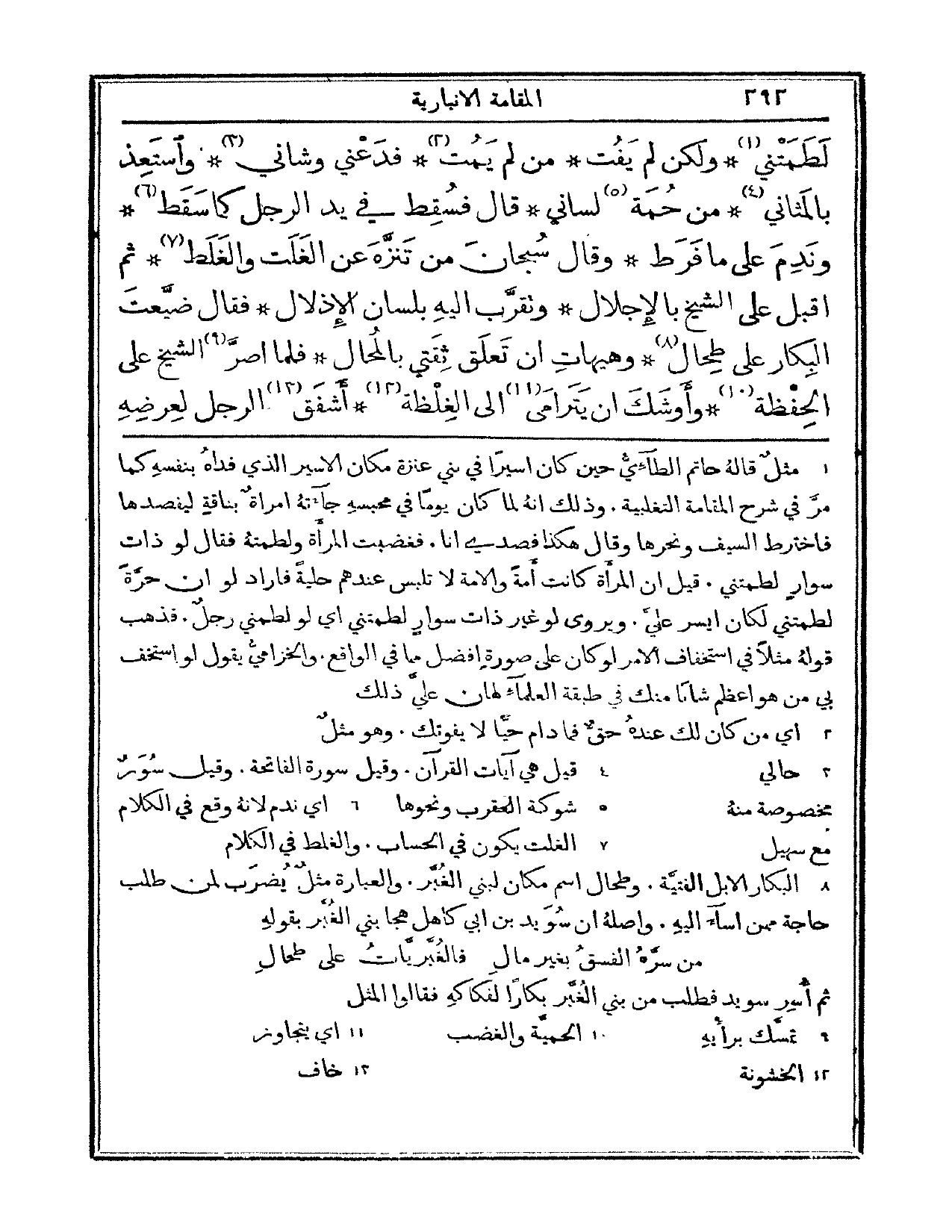 لطمتني. ولكن لم يفت، من لم يمت فدعني وشاني، واستعذ بالمثاني، من حمة لساني، قال: فسقط في يد الرجل كما سقط، وندم على ما فرط، وقال: سبحان من تنزه عن الغلت والغلط. ثم أقبل على الشيخ بالإجلال، وتقرب إليه بلسان الإذلال. فقال: ضيعت البكار على طحال، وهيهات أن تعلق ثقتي بالمحال. فلما أصر الشيخ على الحفظة وأوشك أن يترامى إلى الغلظة. أشفق الرجل لعرضه