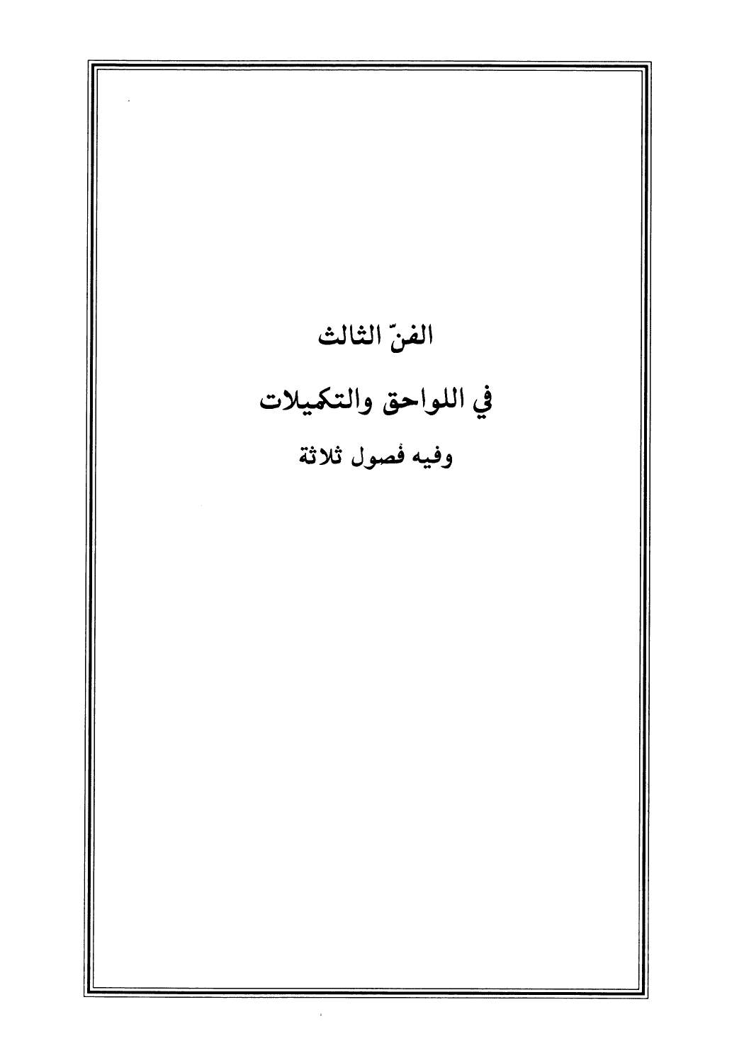 الْفَنّ الثَّالِث فِي اللواحق والتكميلات وَفِيه فُصُول ثَلَاث