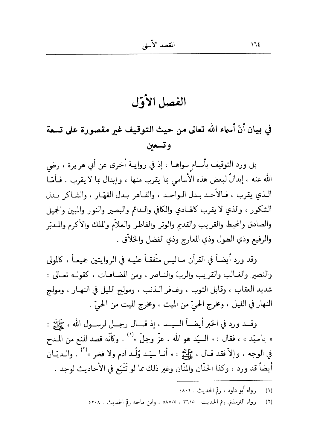 الْفَصْل الأول فِي بَيَان أَن أَسمَاء الله تَعَالَى من حَيْثُ التَّوْقِيف غير مَقْصُورَة على تِسْعَة وَتِسْعين