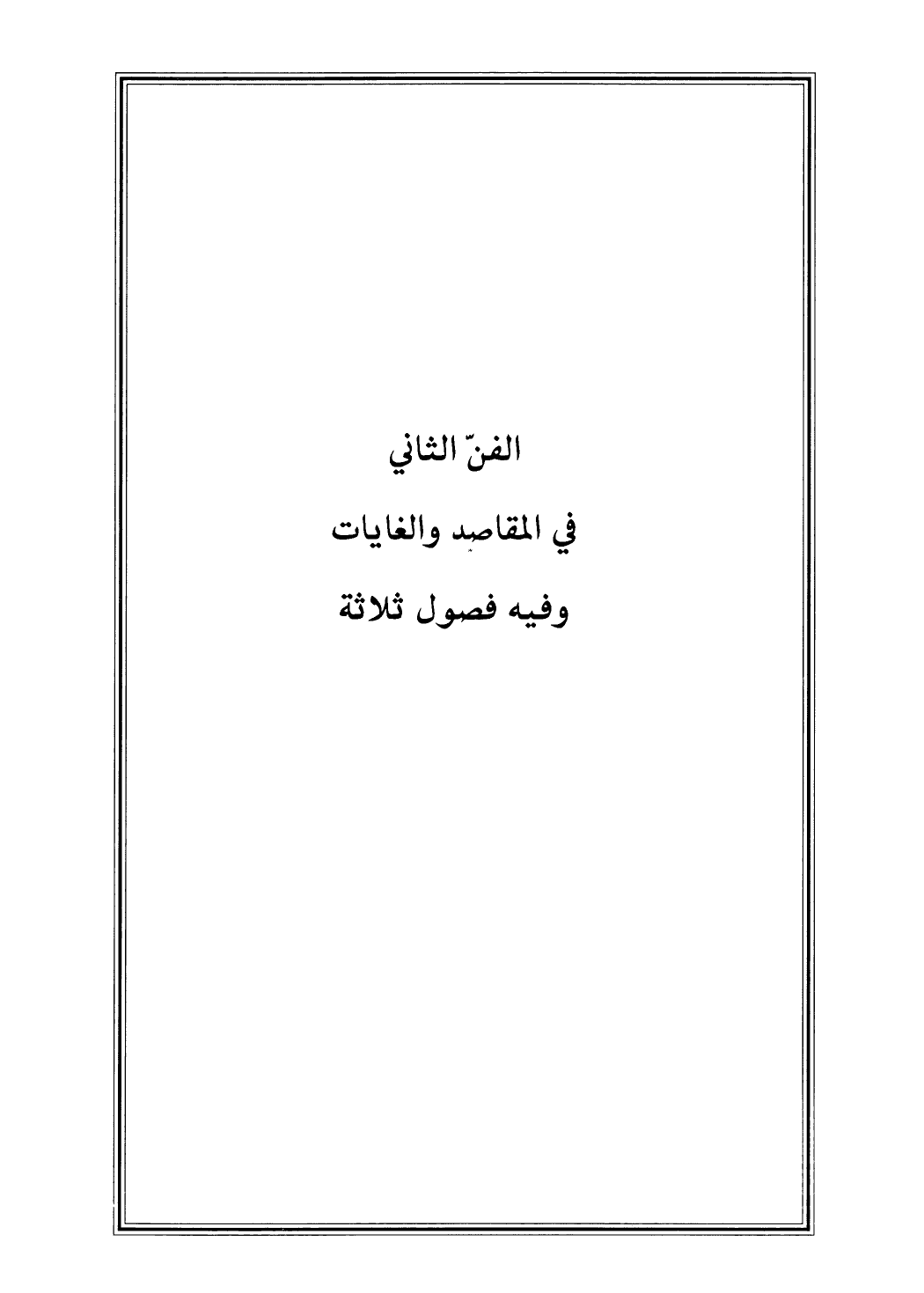 الْفَنّ الثَّانِي فِي الْمَقَاصِد والغايات وَفِي فُصُول ثَلَاثَة