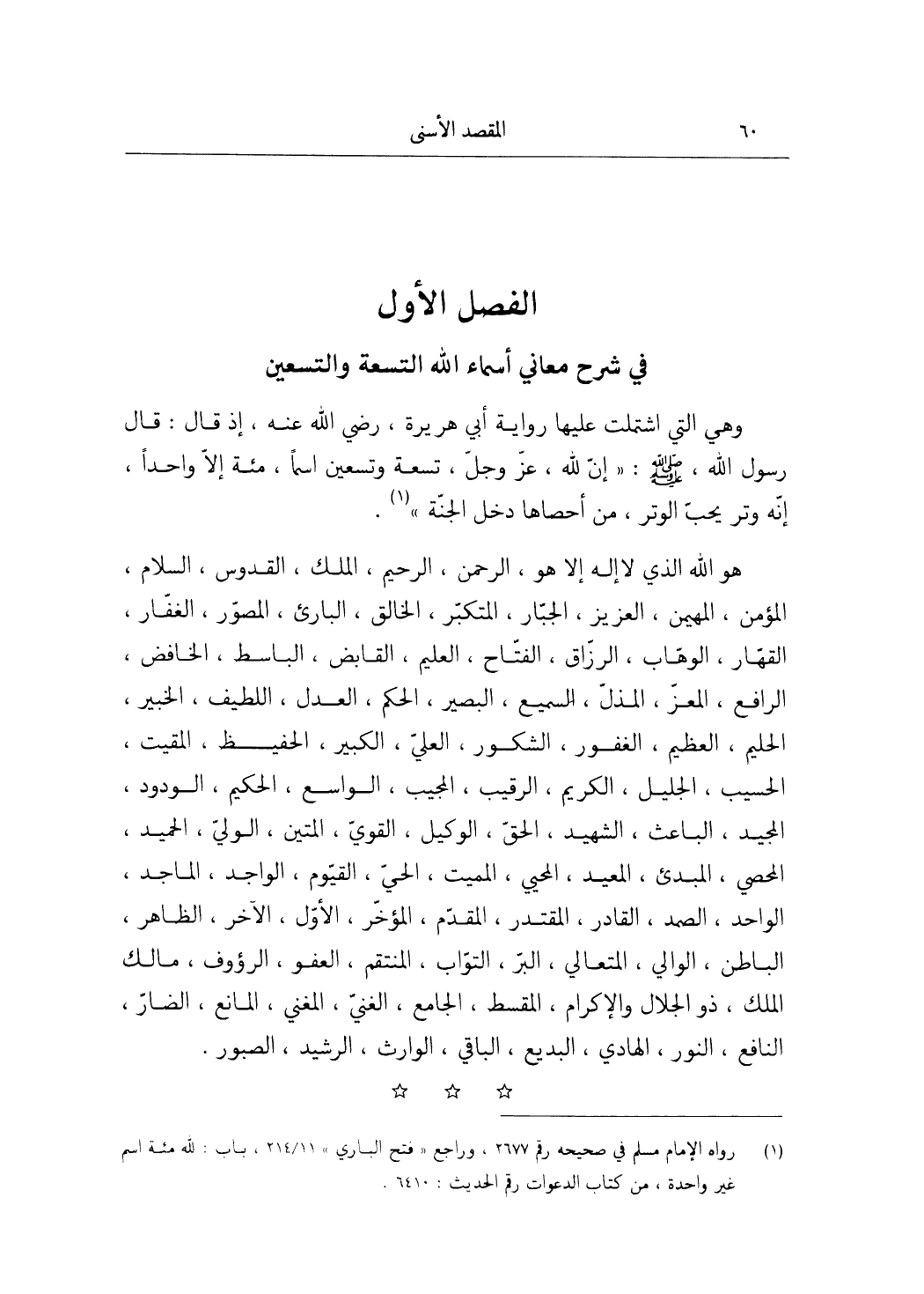 الْفَصْل الأول فِي شرح مَعَاني أَسمَاء الله التِّسْعَة وَالتسْعين