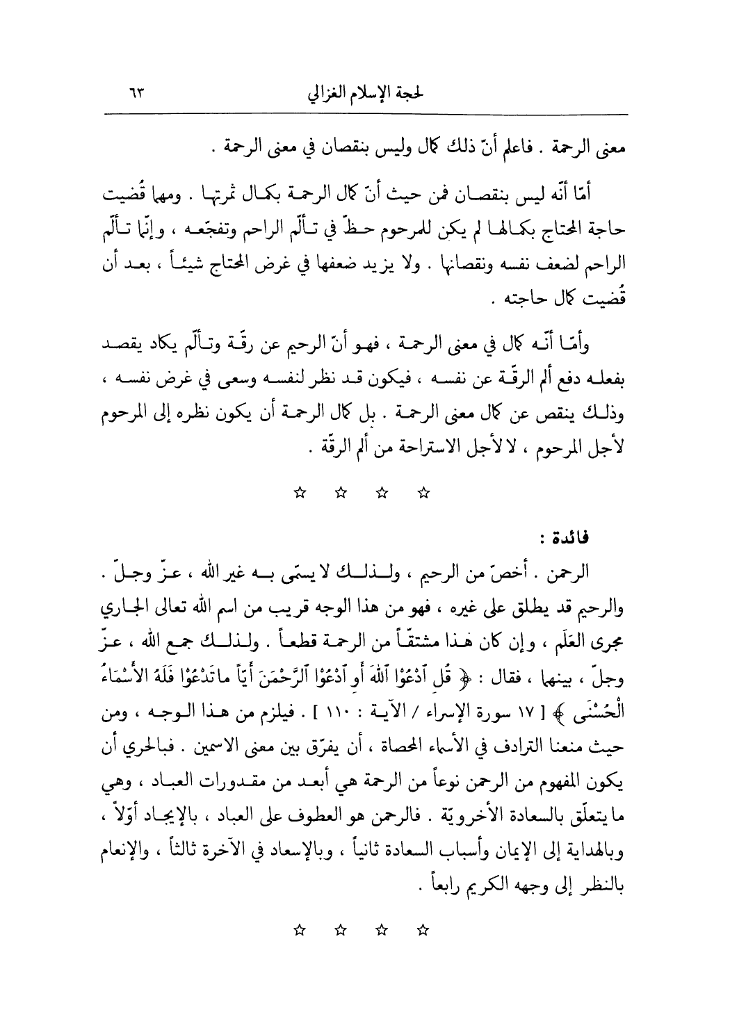 معنى الرَّحْمَة فَاعْلَم أَن ذَلِك كَمَال وَلَيْسَ بِنُقْصَان فِي معنى الرَّحْمَة