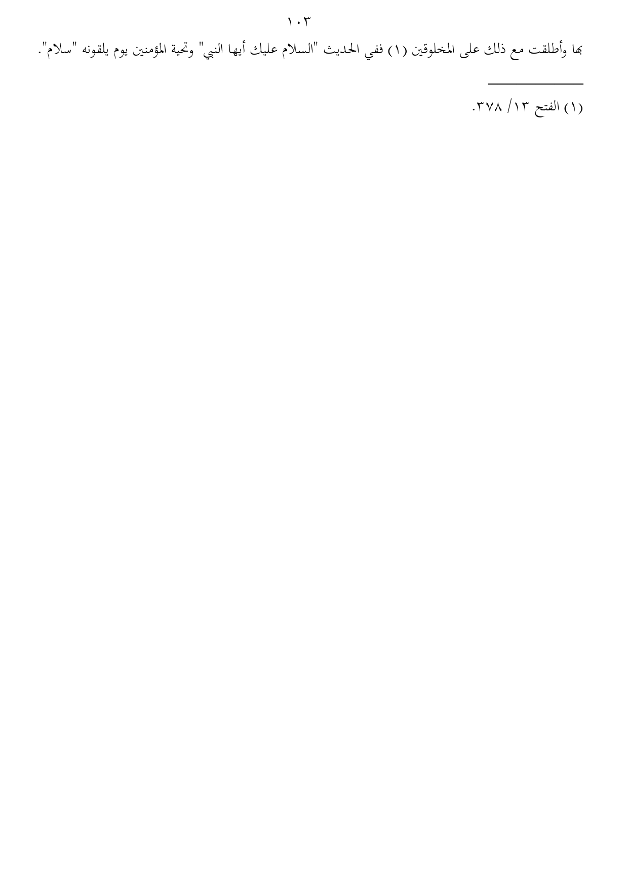 بها وأطلقت مع ذلك على المخلوقين (¬1) ففي الحديث "السلام عليك أيها النبي" وتحية المؤمنين يوم يلقونه "سلام".