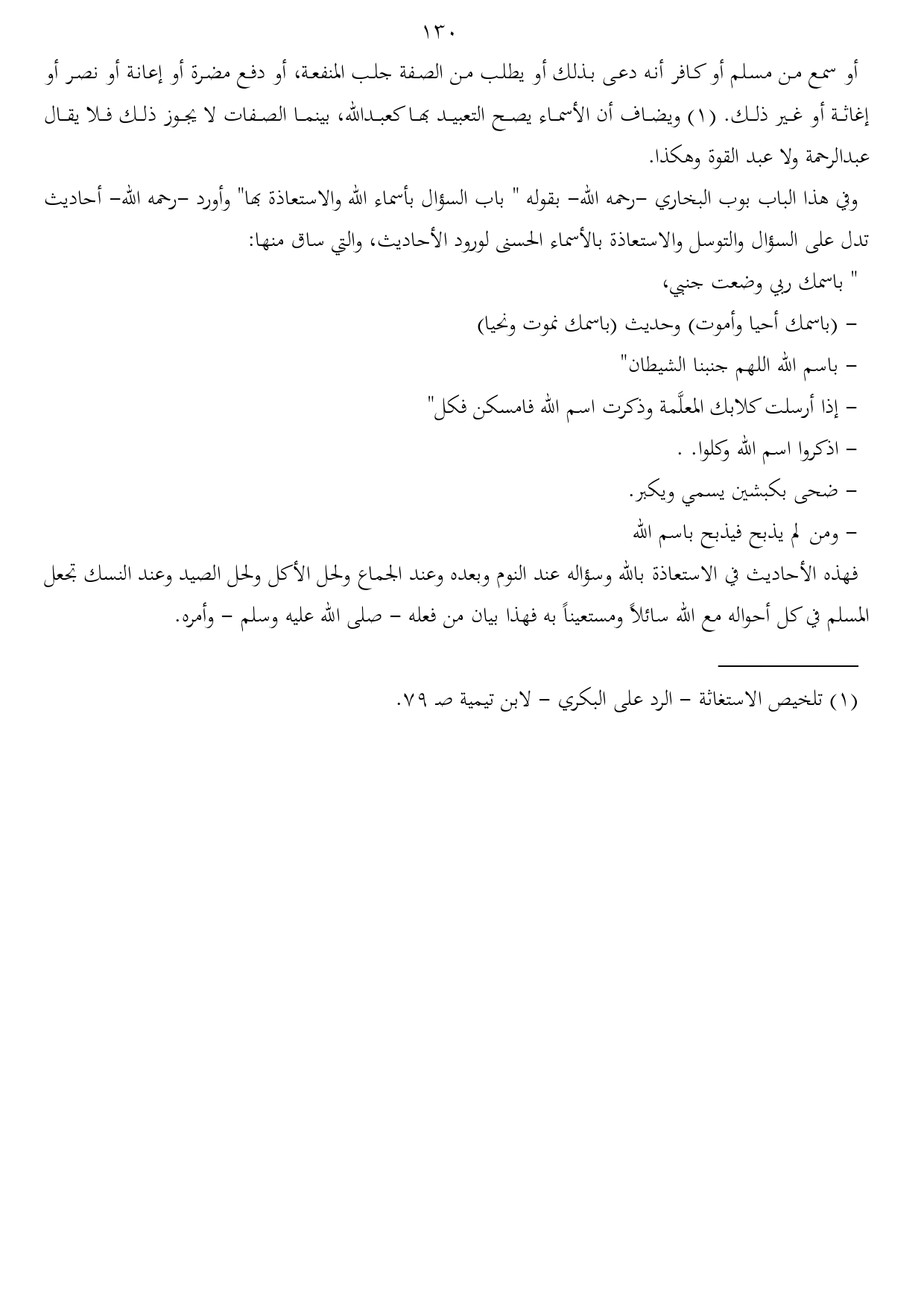 (¬1) تلخيص الاستغاثة - الرد على البكري - لابن تيمية صـ 79.