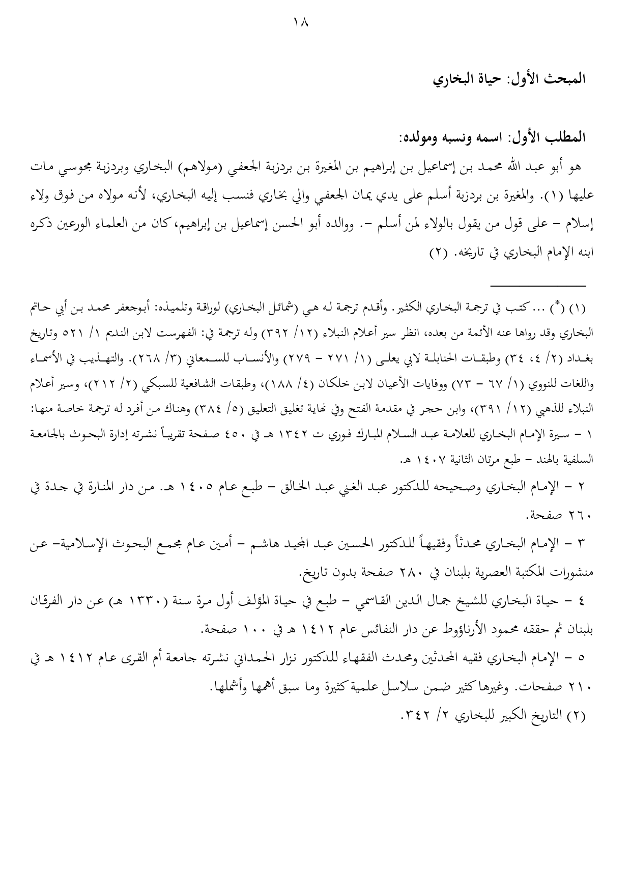 (¬1) (*) ... كتب في ترجمة البخاري الكثير.