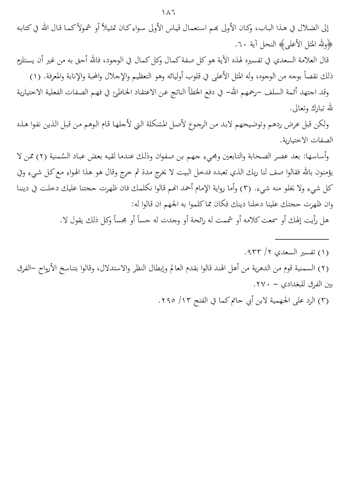 وقد اجتهد أئمة السلف -رحمهم الله- في دفع الخطأ الناتج عن الاعتقاد الخاطئ في فهم الصفات الفعلية الاختيارية لله تبارك وتعالى.