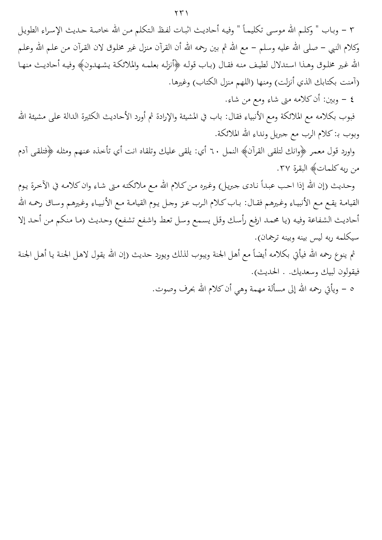 5 - ويأتي رحمه الله إلى مسألة مهمة وهي أن كلام الله بحرف وصوت.