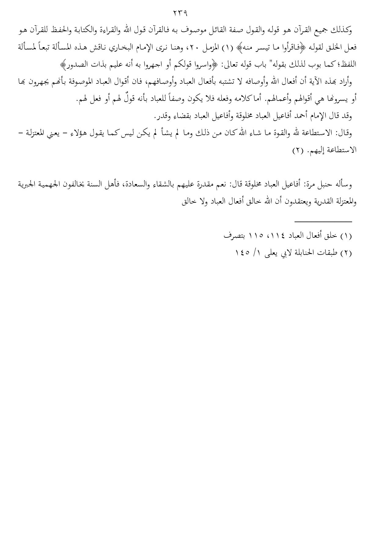 (¬1) خلق أفعال العباد 114، 115 بتصرف