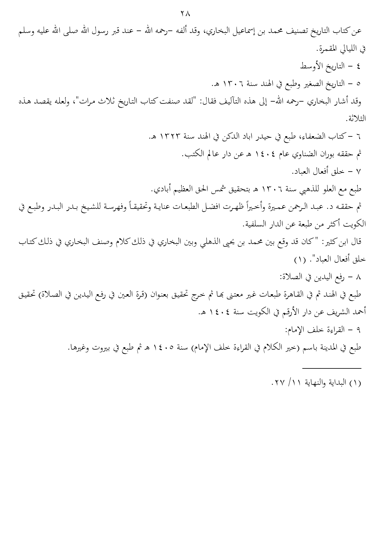 وقد أشار البخاري -رحمه الله- إلى هذه التآليف فقال: "لقد صنفت كتاب التاريخ ثلاث مرات"، ولعله يقصد هذه الثلاثة.