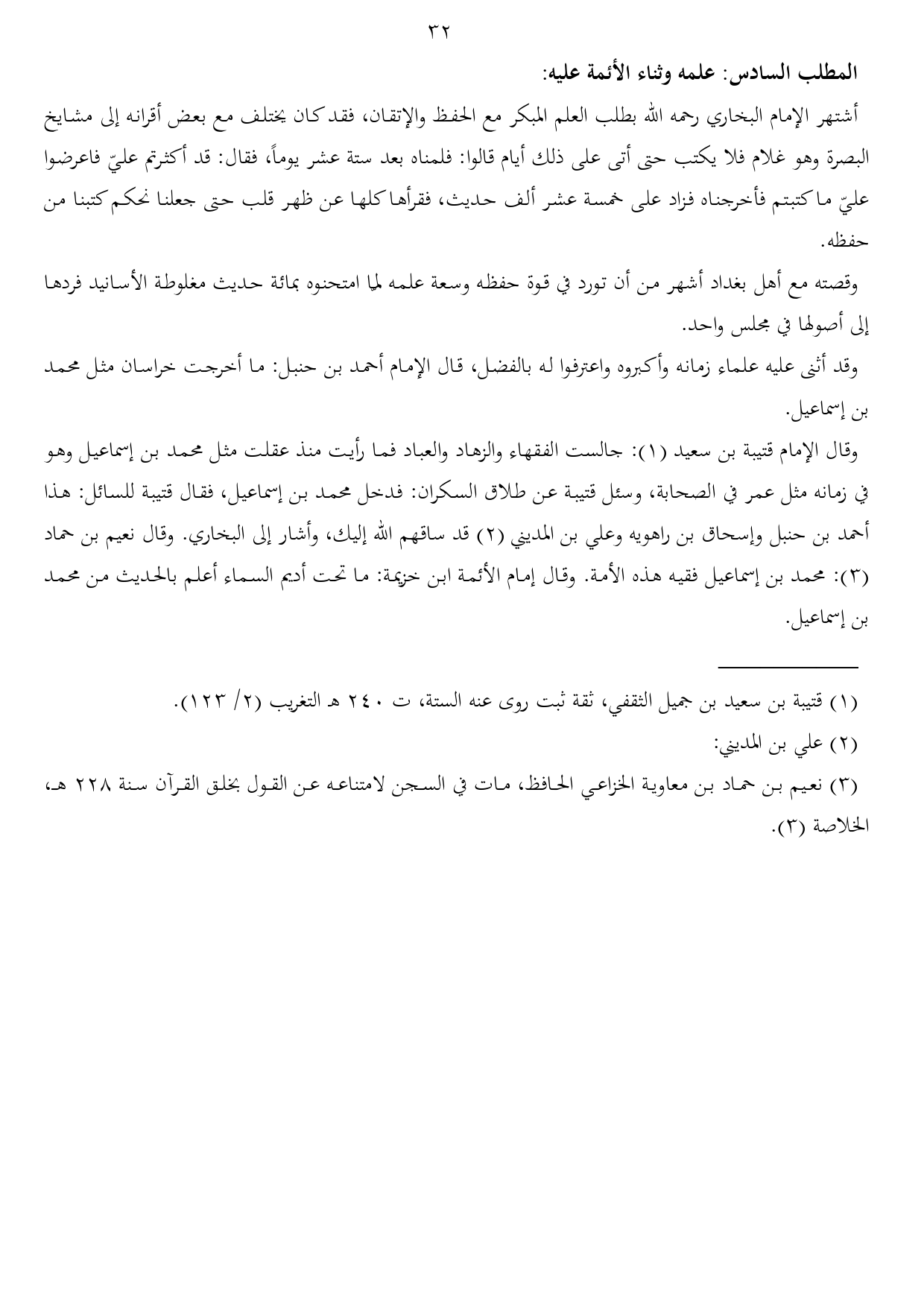 المطلب السادس: علمه وثناء الأئمة عليه: