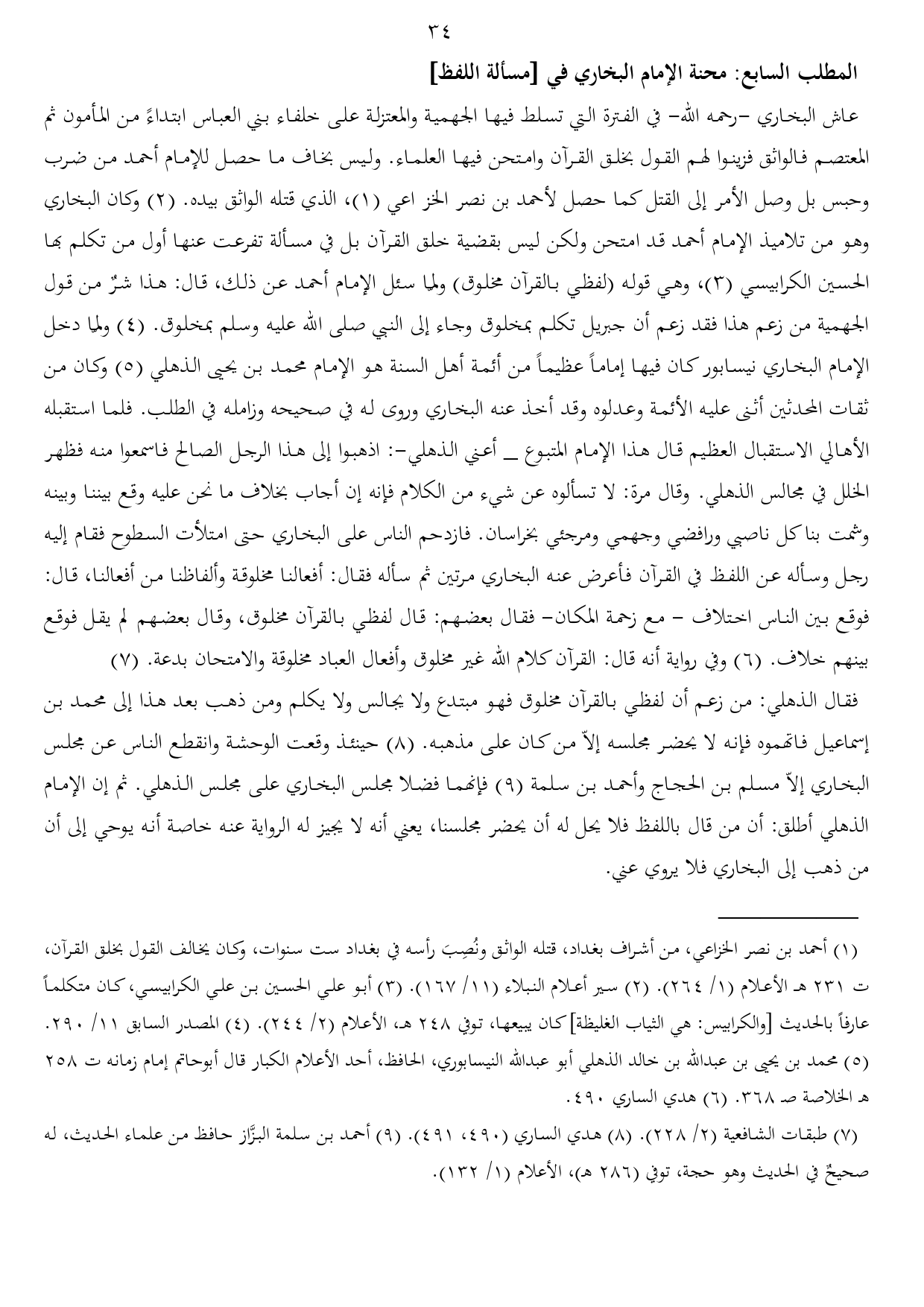 المطلب السابع: محنة الإمام البخاري في [مسألة اللفظ]