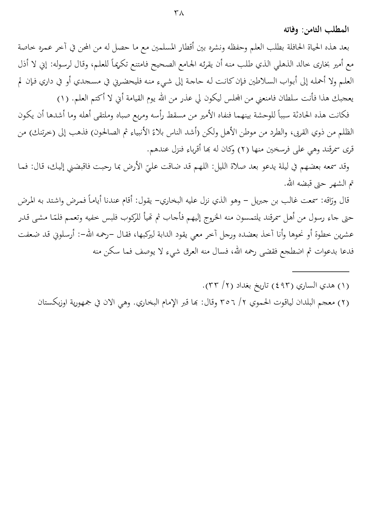 (¬2) معجم البلدان لياقوت الحموي 2/ 356 وقال: بها قبر الإمام البخاري. وهي الان في جمهورية اوزبكستان