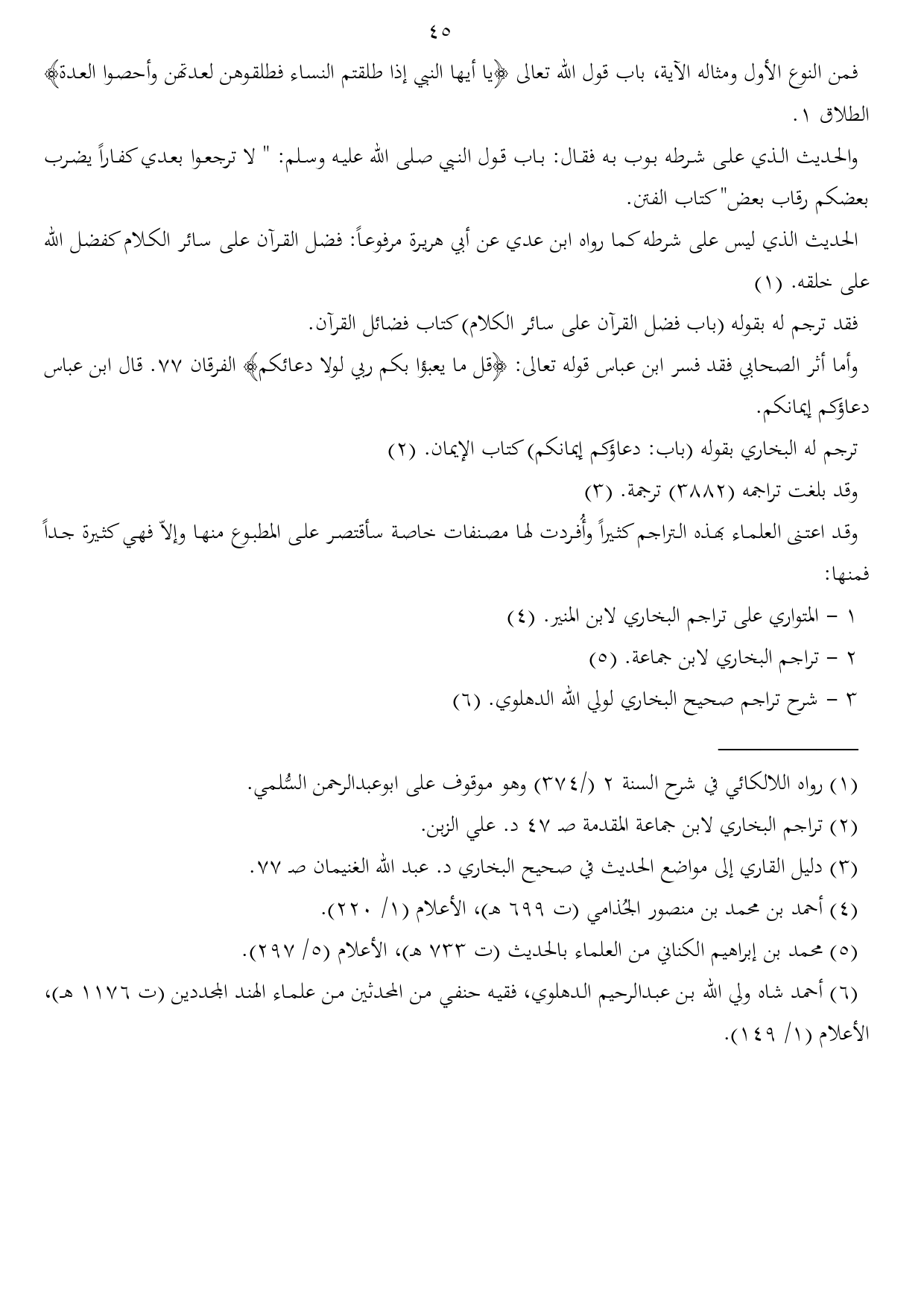 (¬2) تراجم البخاري لابن جماعة المقدمة صـ 47 د. علي الزبن.