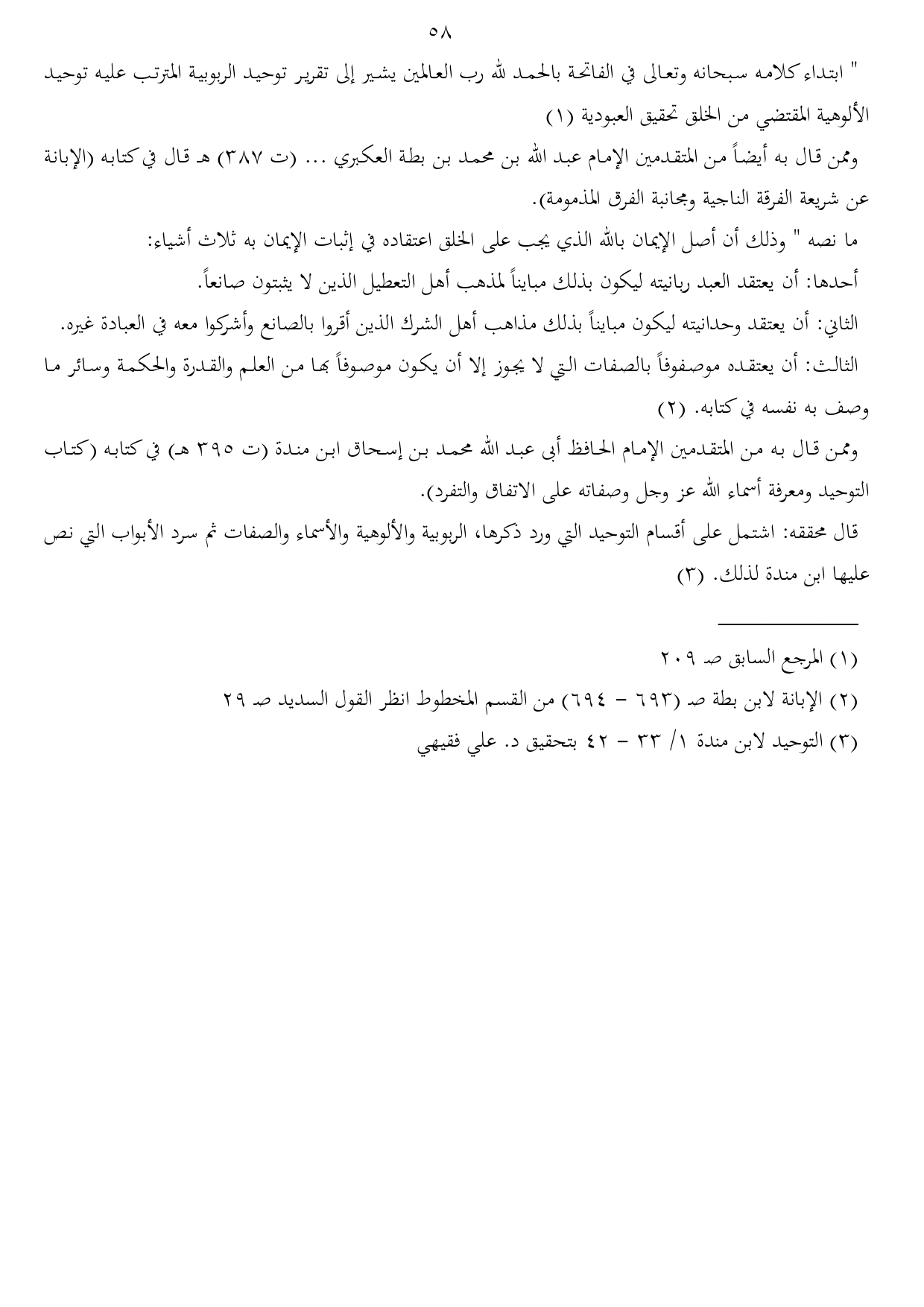 (¬3) التوحيد لابن مندة 1/ 33 - 42 بتحقيق د. علي فقيهي