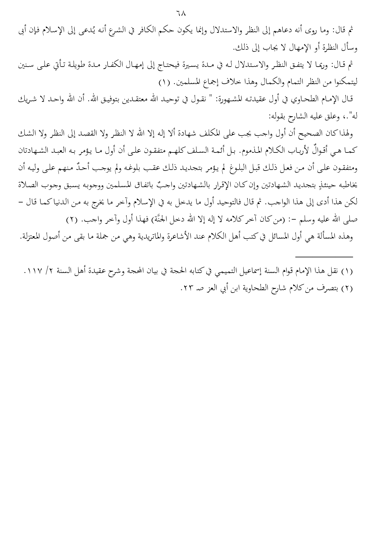 (¬2) بتصرف من كلام شارح الطحاوية ابن أبي العز صـ 23.
