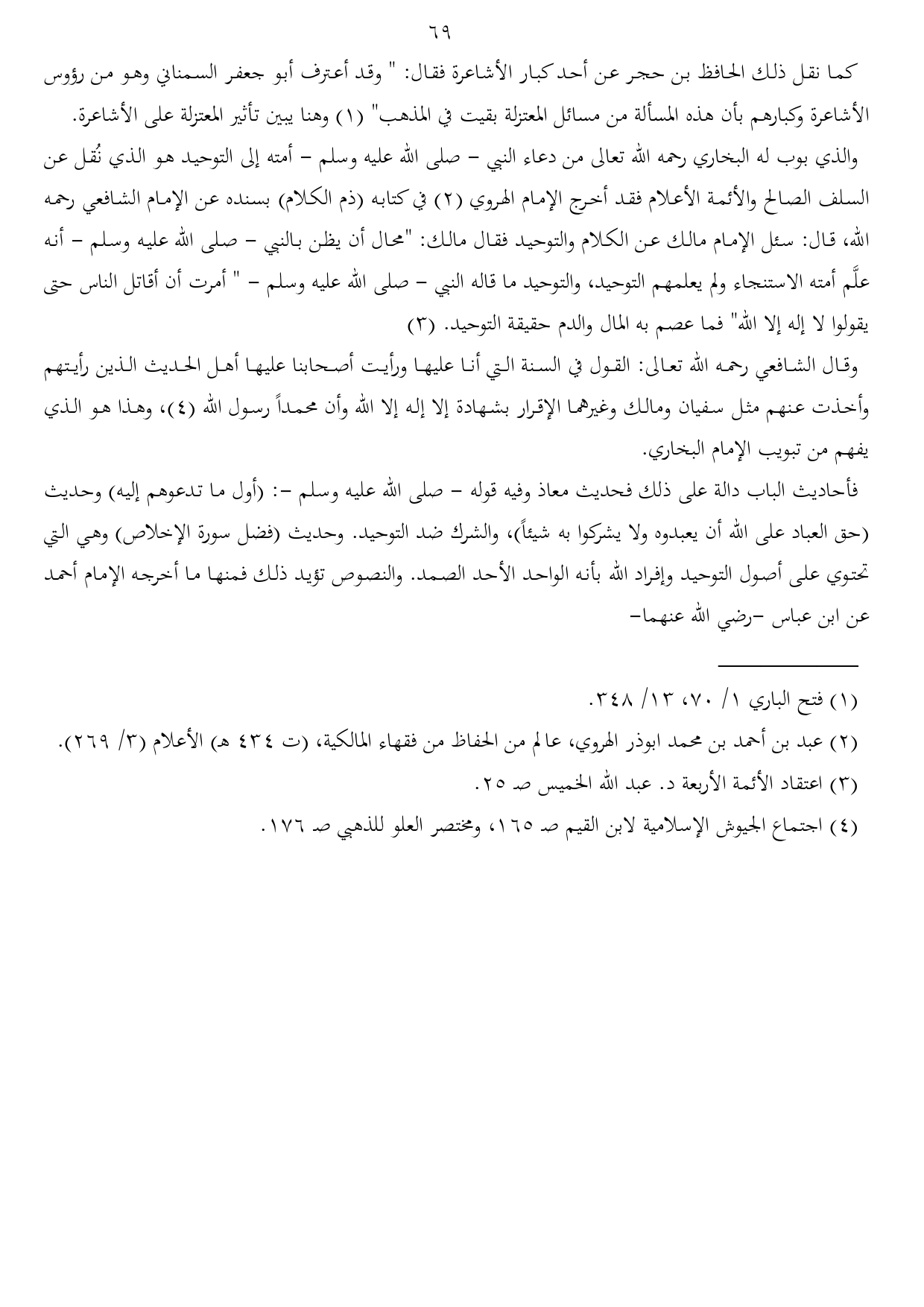(¬3) اعتقاد الأئمة الأربعة د. عبد الله الخميس صـ 25.