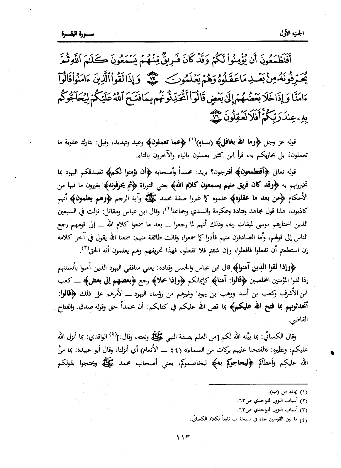 {أَفَتَطْمَعُونَ أَنْ يُؤْمِنُوا لَكُمْ وَقَدْ كَانَ فَرِيقٌ مِنْهُمْ يَسْمَعُونَ كَلَامَ اللَّهِ ثُمَّ يُحَرِّفُونَهُ مِنْ بَعْدِ مَا عَقَلُوهُ وَهُمْ يَعْلَمُونَ (75) وَإِذَا لَقُوا الَّذِينَ آمَنُوا قَالُوا آمَنَّا وَإِذَا خَلَا بَعْضُهُمْ إِلَى بَعْضٍ قَالُوا أَتُحَدِّثُونَهُمْ بِمَا فَتَحَ اللَّهُ عَلَيْكُمْ لِيُحَاجُّوكُمْ بِهِ عِنْدَ رَبِّكُمْ أَفَلَا تَعْقِلُونَ (76) }