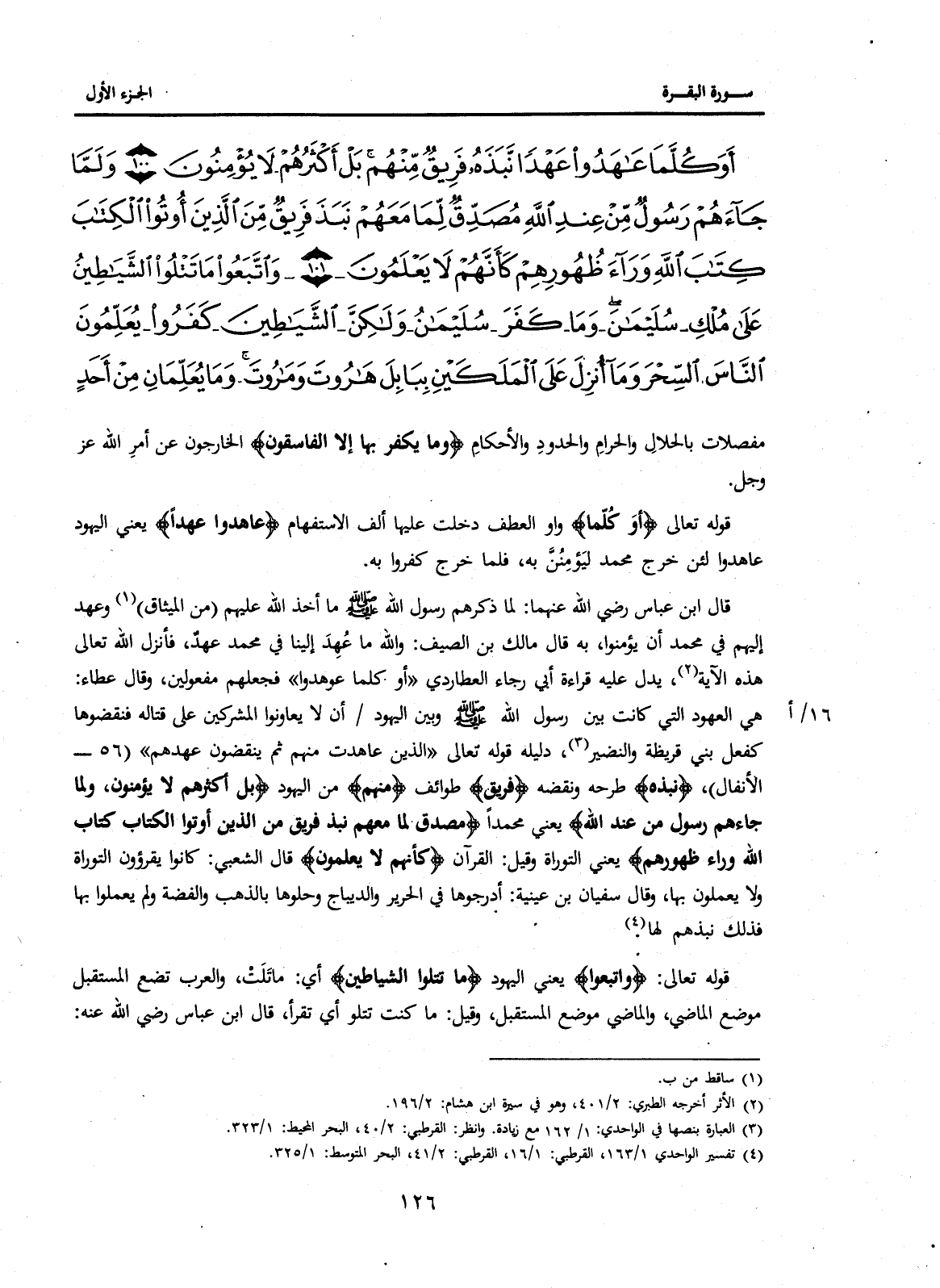 (1) تفسير الواحدي 1 / 163، القرطبي: 1 / 16، القرطبي: 2 / 41، البحر المحيط: 1 / 325.