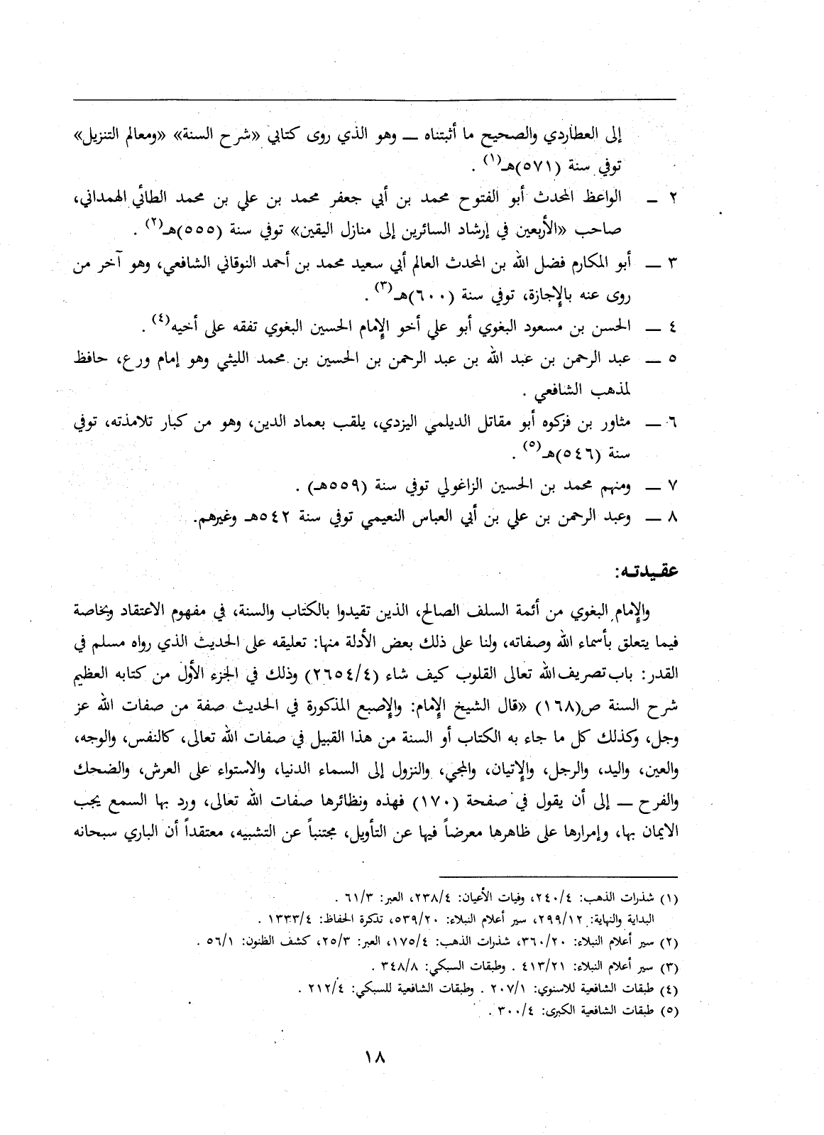 إلى العطاردي والصحيح ما أثبتناه -وهو الذي روى كتابي "شرح السنة"ومعالم التنزيل"