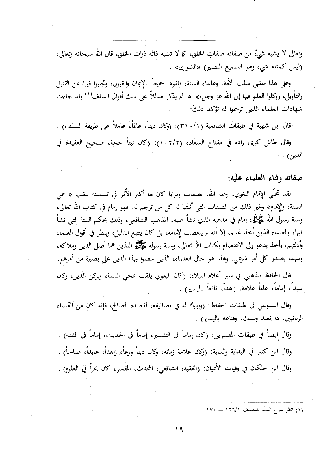 (1) انظر شرح السنة للمصنف 1/166- 171.